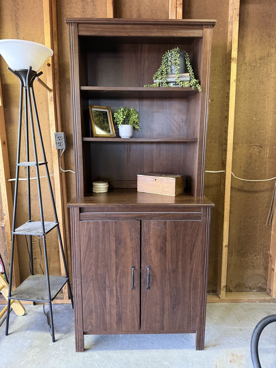 VenmoTall cabinet/bar with two doors. Height: 75 inches Width: 31.5 inches Depth: 19 inches