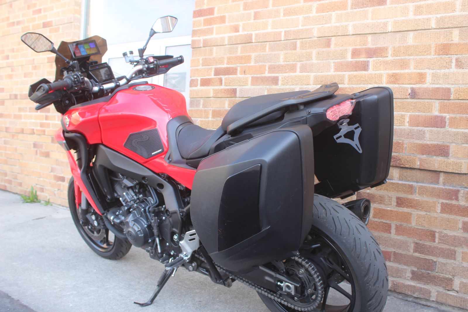 Amazing condition 2022 Yamaha Tracer 9 GT with tasteful add ons. It comes with Akropovic exhaust that sounds so good on this bike and it also has an added screen for your Android auto or Carplay and maps.