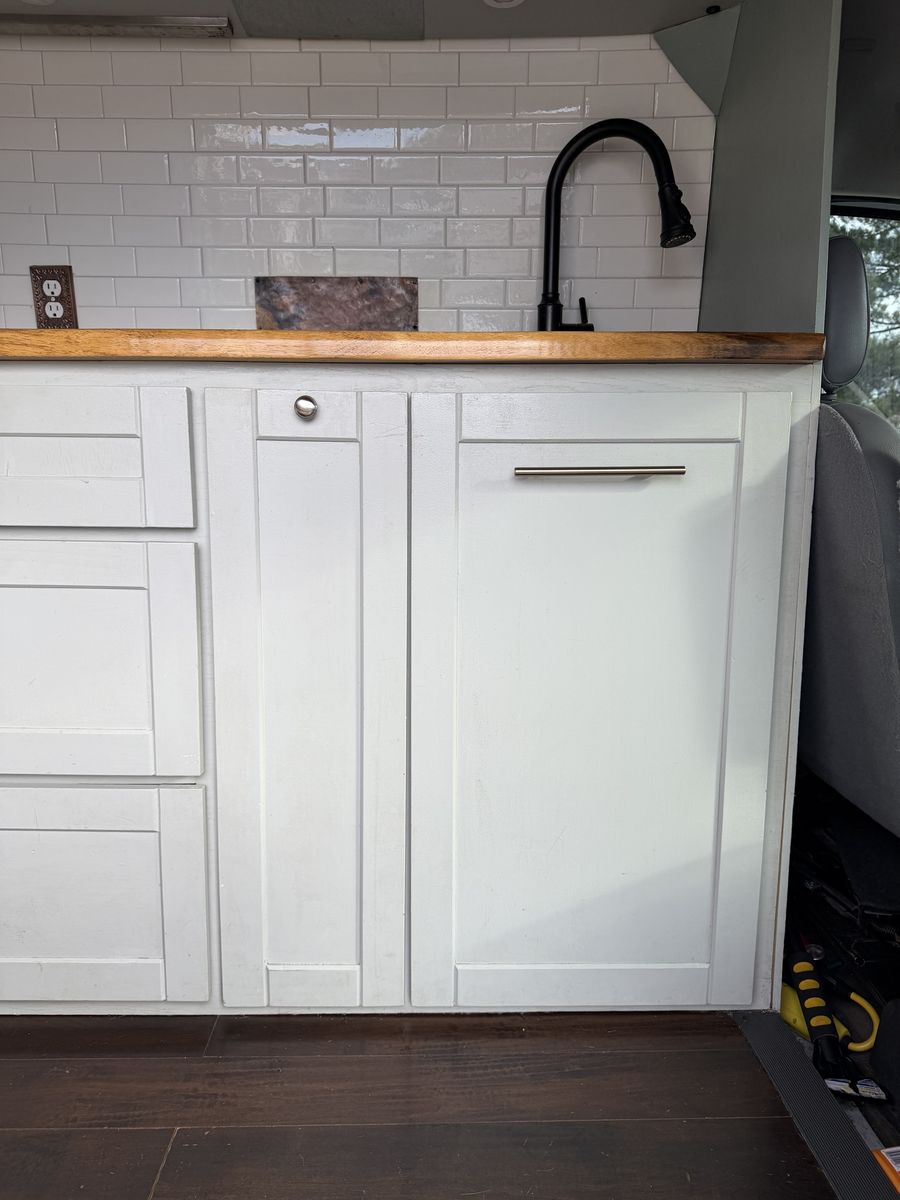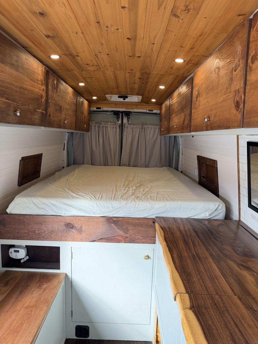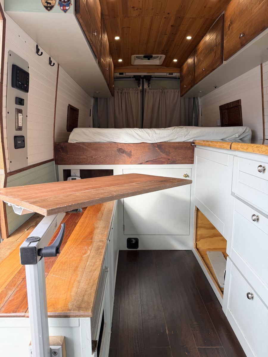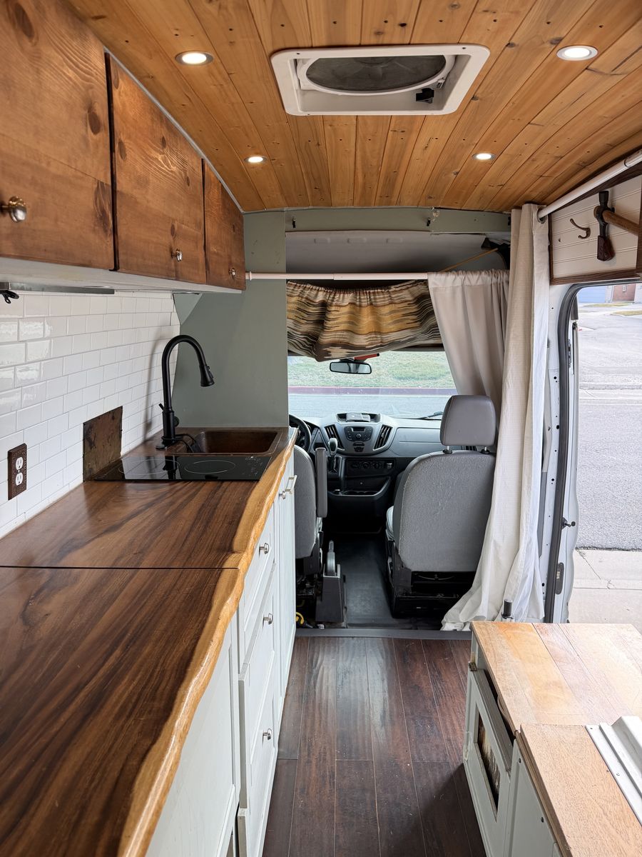 Designed for simple, safe vanlife — no propane needed thanks to an induction cooktop and a powerful electrical system.