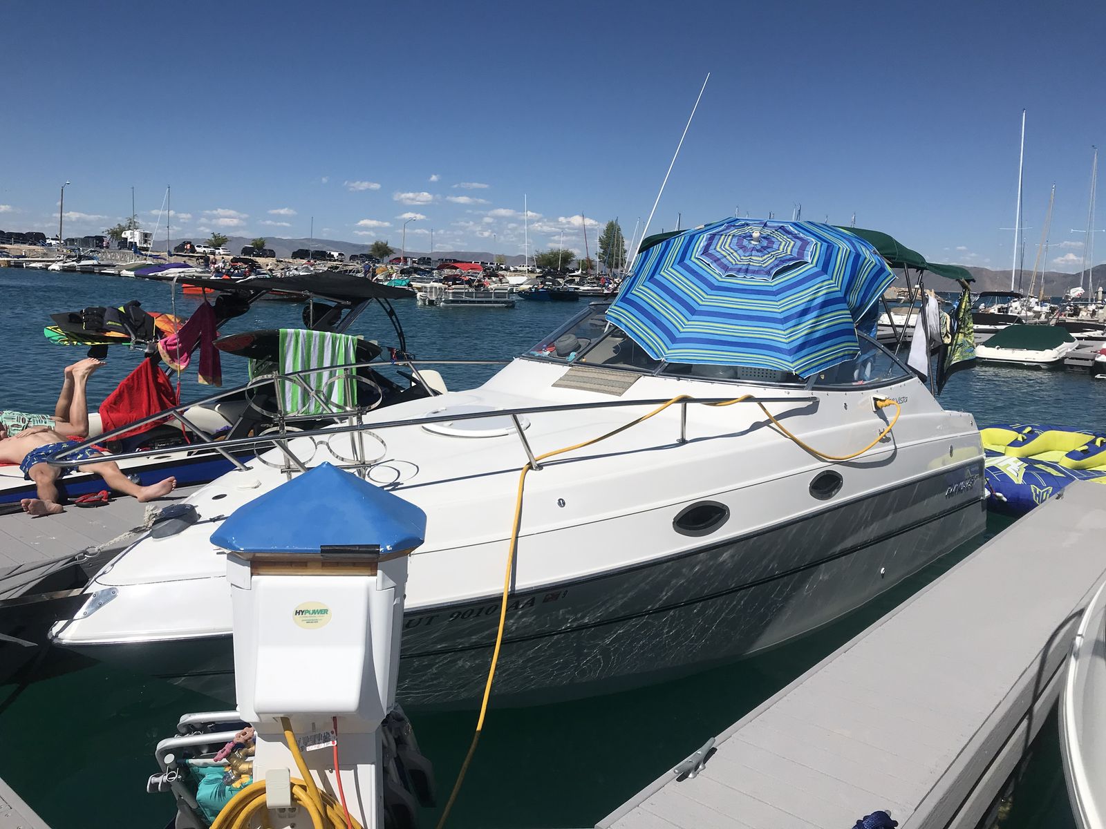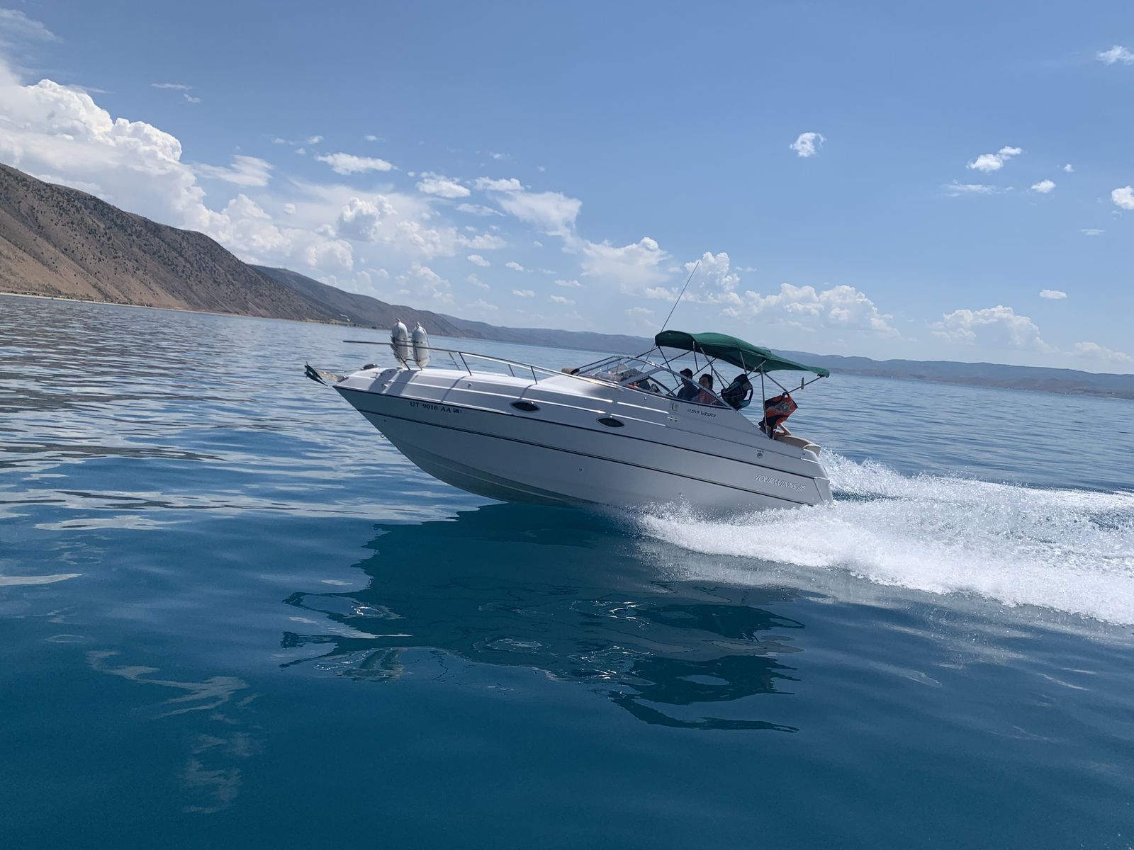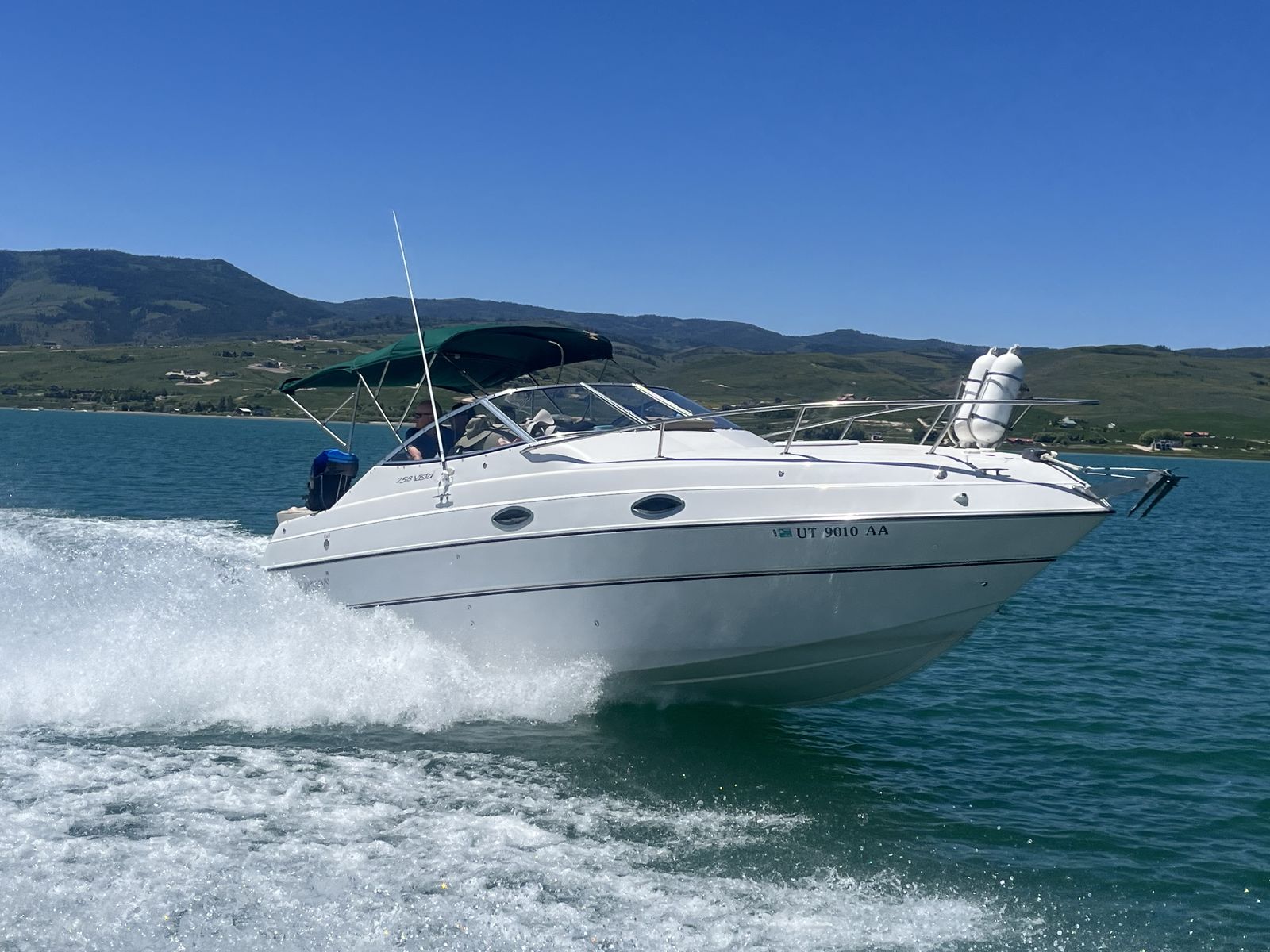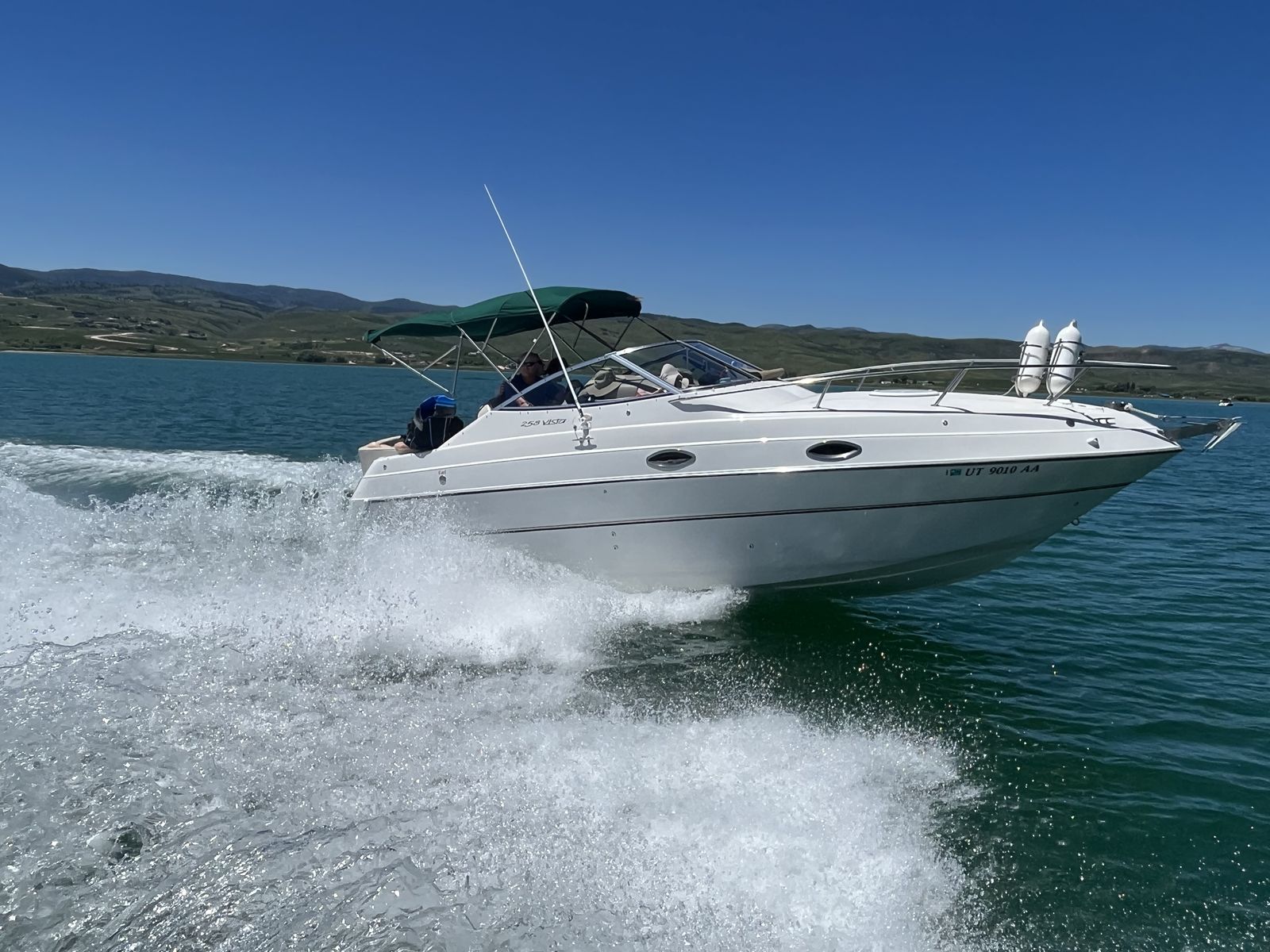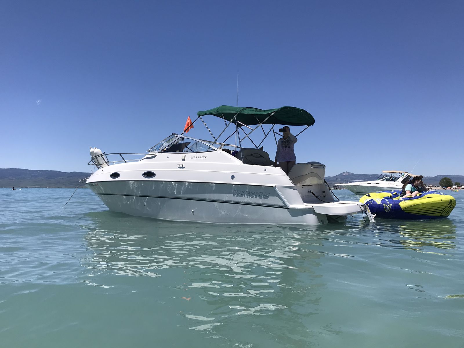 CashAppSuper clean 1999 Fourwinns Vista 258 cuddy mini yacht, dual out drive Volvo penta, 350 chevy engine, fridge, stove, microwave, water heater, bathroom, shower, macerator, outdoor shower, 2 sinks, 40 gallon water heater I believe and 50 gallon fuel tank I believe with sewer holding tank, sleeps 6 people comfortably, has marine radio, compass for ocean trips, depth finder, storage cover, winless anchor with foot pedals on the front or switch in the back to anchor and camp in a bay overnight, newer tires, spare tire, comes with trailer. Also has power cord for 120 hook up. Been stored in garage last 12 years and used 1 time a year, wheel bearings and servicing all done and ready to go to make your own memories. 20,900 right now and will go up in price when boating season is in full tilt. Great boat for lake Powell, Bear Lake, Lake Mead, ocean or any lake