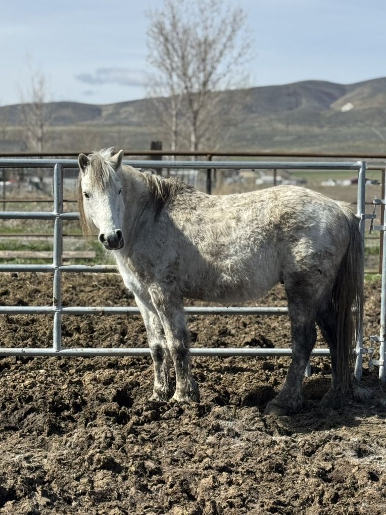 8 year old grey gelding pony. Beautiful pony. He’s not very halter broke, but has had them on before. Project pony.