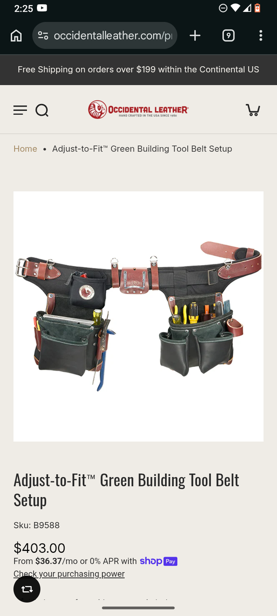 GooglePayOccidental leather belt this belt is 431.00 dollars brand new. Iwas using for a carpenter job then hurt knee so I'm selling. Only used for two weeks. It's really the best one I could get when you see it you'll agree it's a steal for 250.00.Add another 30.00 for tax and I paid 460... So that's over 200.00 for using for 10 days.