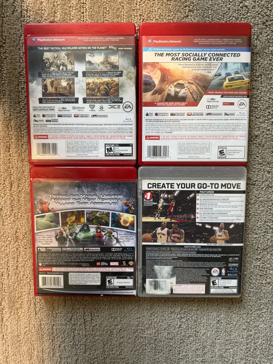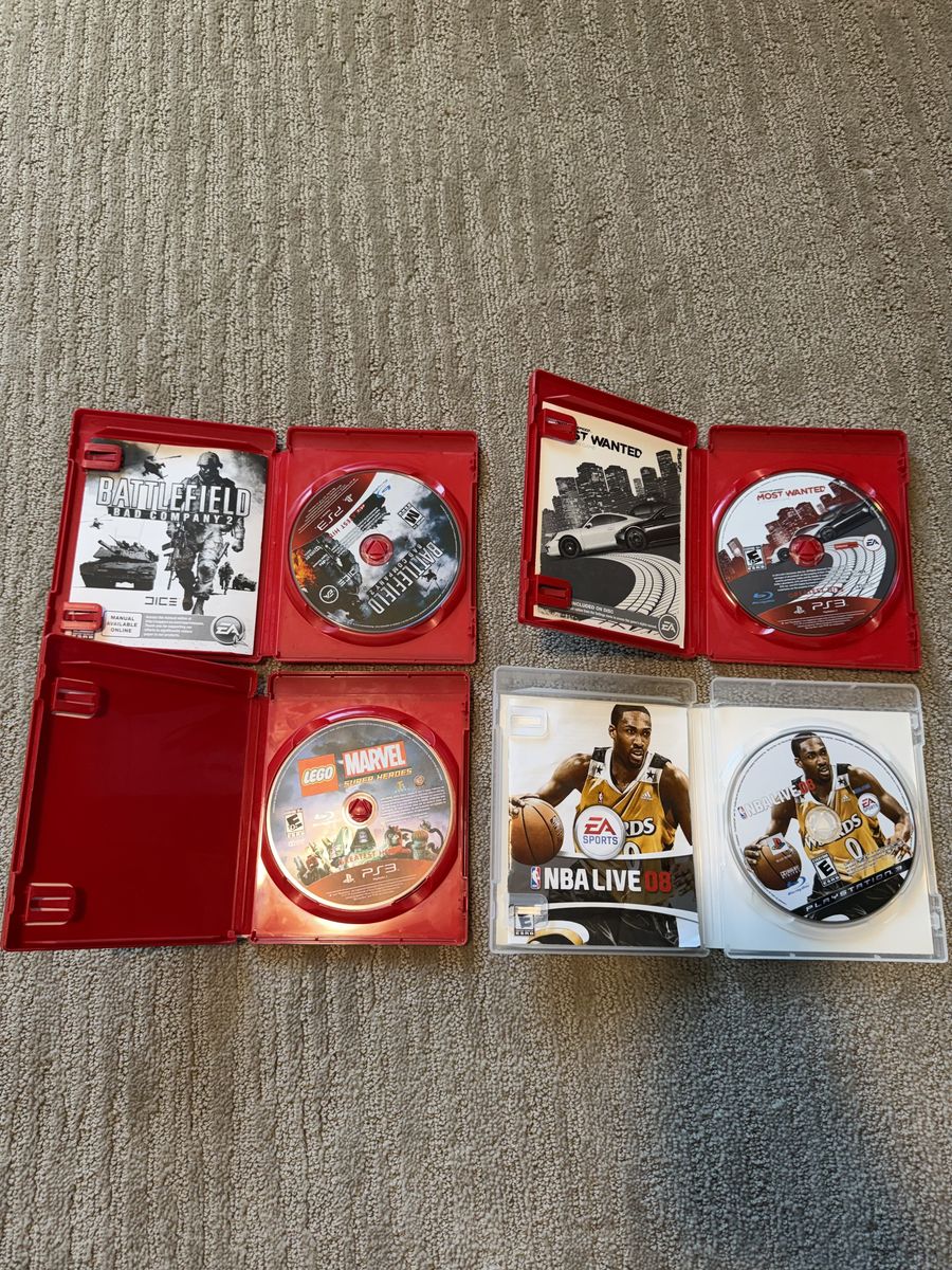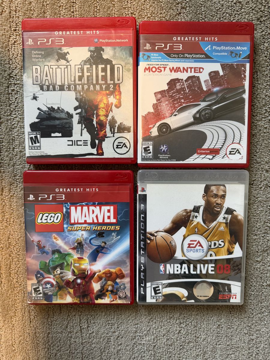 (CIB) Battlefield Bad Company 2 $5 (CIB) Need For Speed Most Wanted $5 (Missing Manual) Lego Marvel Superheroes $5 (CIB) NBA Live 08 $5 Loose disc only and manual God of War 3 and God of War collection $10 Loose disc only Silent Hill Homecoming $5