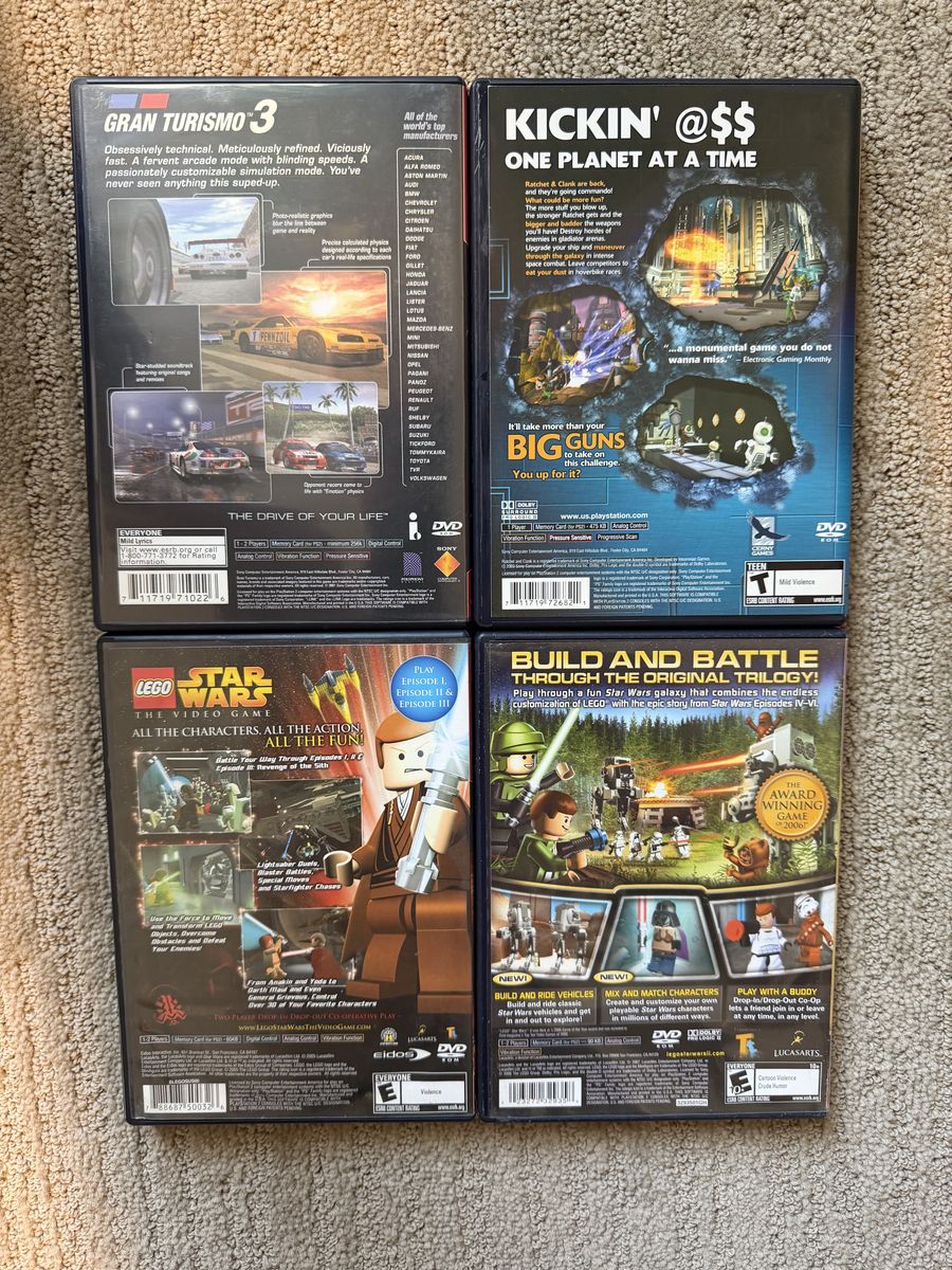 Grand Turismo 3 A-Spec $10 (CIB) Ratchet and Clank Going Commando $10 (CIB) Lego Star Wars The Video Game $10 (CIB) Lego Star Wars 2 The Original Trilogy $10
