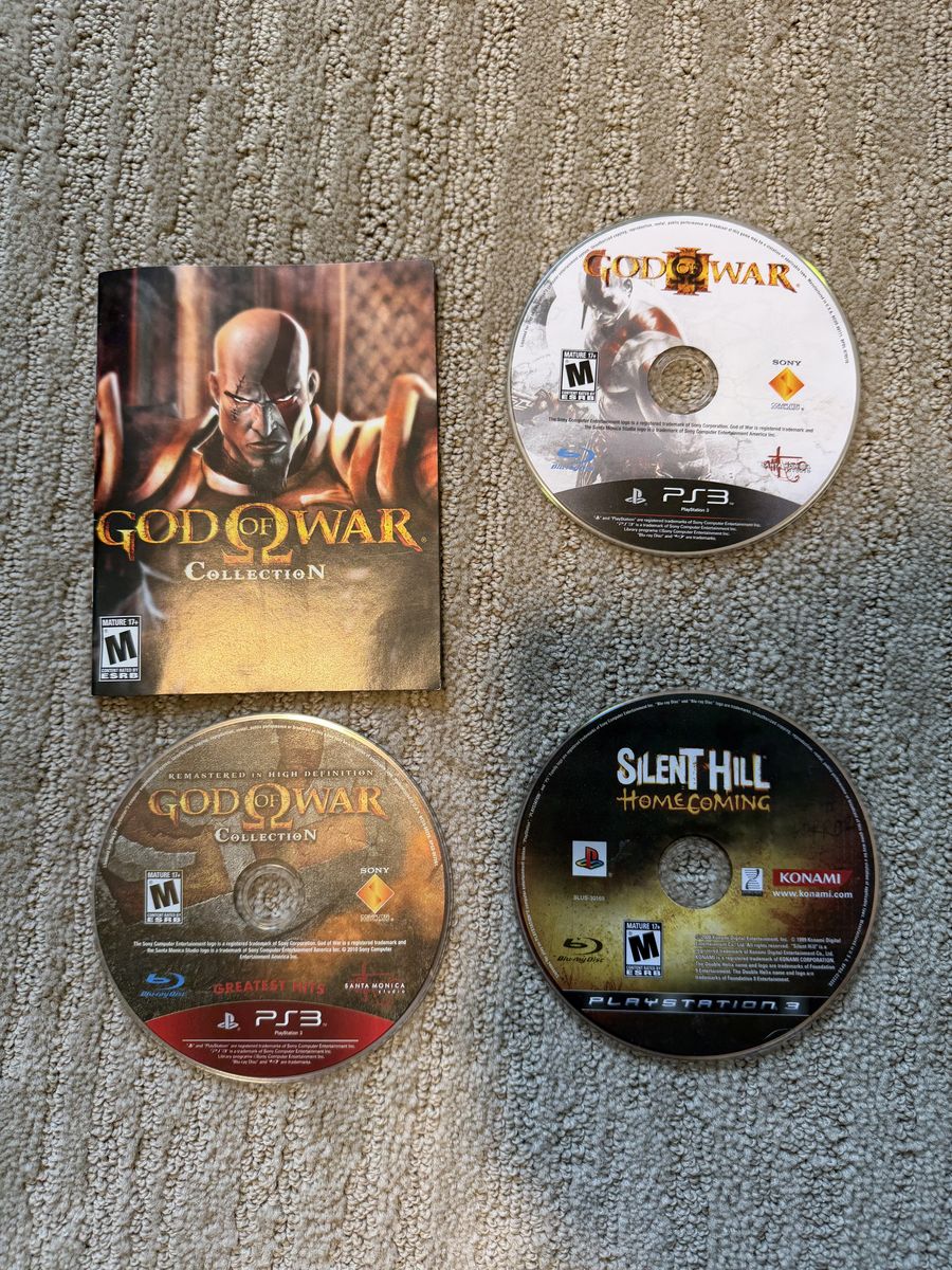 VenmoI have 4 PlayStation 2 games all CIB ( Complete in box) two of the discs have some scratches but all still work perfectly! 7 PlayStation 3 games, 3 of them are CIB one is just missing the manual, and 3 loose games and 1 manual for God Of War. 1 PSP which is in perfect condition CIB. Prices for each are listed below or if you buy all of them together I’ll do a bundle deal for $60 OBO just shoot me and offer