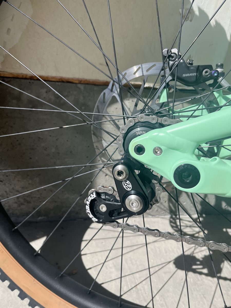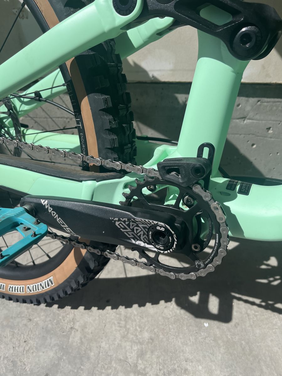 Frame-specialized status 2023 XL Fork-fox 36 rhythm Wheelset-Hunt Enduro wide V2 mullet 29-27.5 Brakes-sram code Single speed by reverse tech Alloy bars, seat posts and stem Tires-maxxis minion DHF/DHR