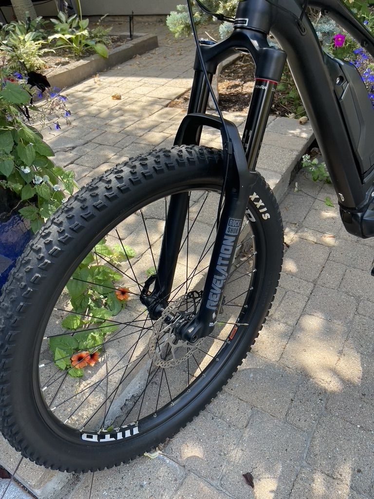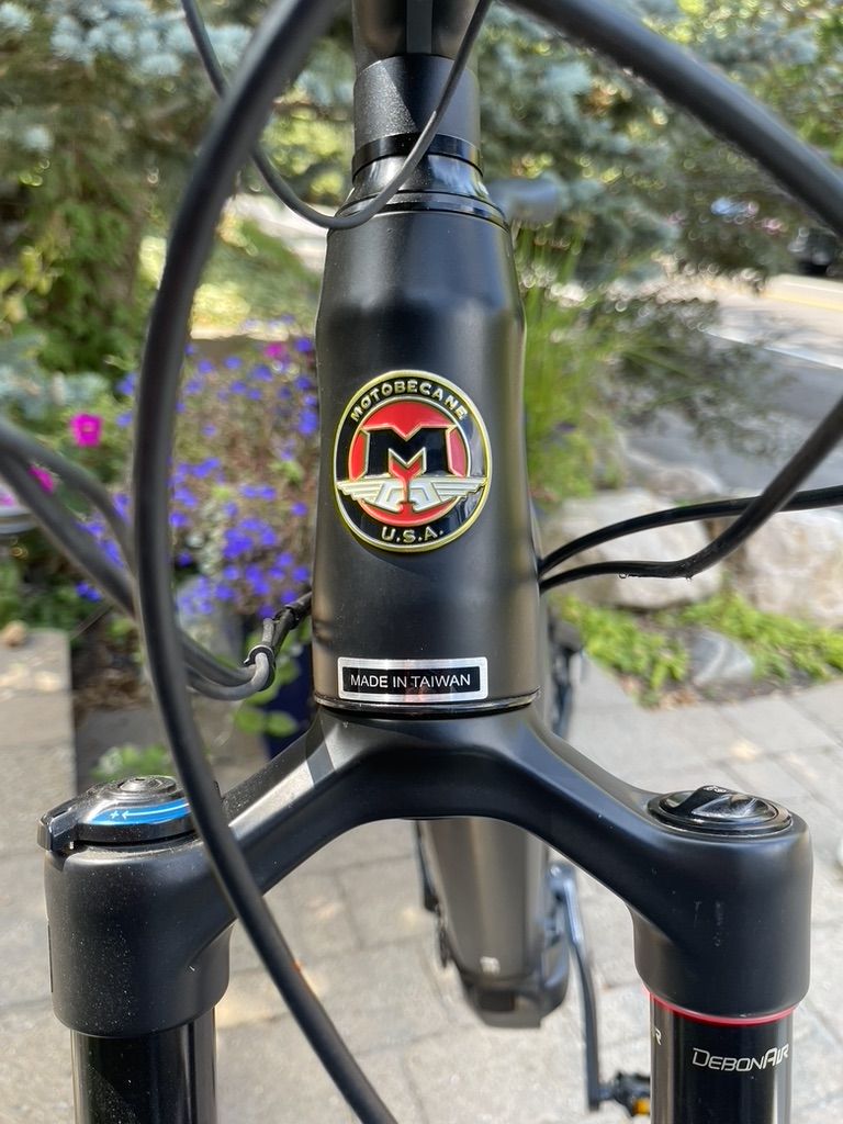 Motobecane Full Suspension E Mountain Bike in perfect condition. Medium Size. New 27.5" Maxxis tubeless tire set up. HAL E-Boost Shimano engine, best in class! Pedal assist with 3 modes: Eco / Trail / Boost. Rock Shox front fork. Adjustable rear suspension. Dropper Post with Brand New Saddle. Charger included. Such a fun bike! See more: https://motobecane.com/ebikes/