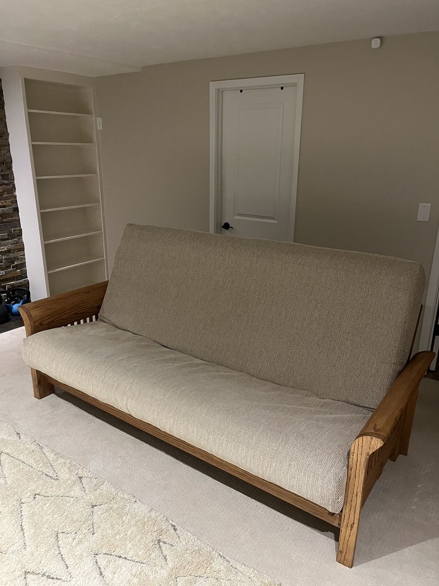 VenmoFor sale is a very nice Oak futon that folds down into a queen bed. It is in very good shape and has hardly been used.