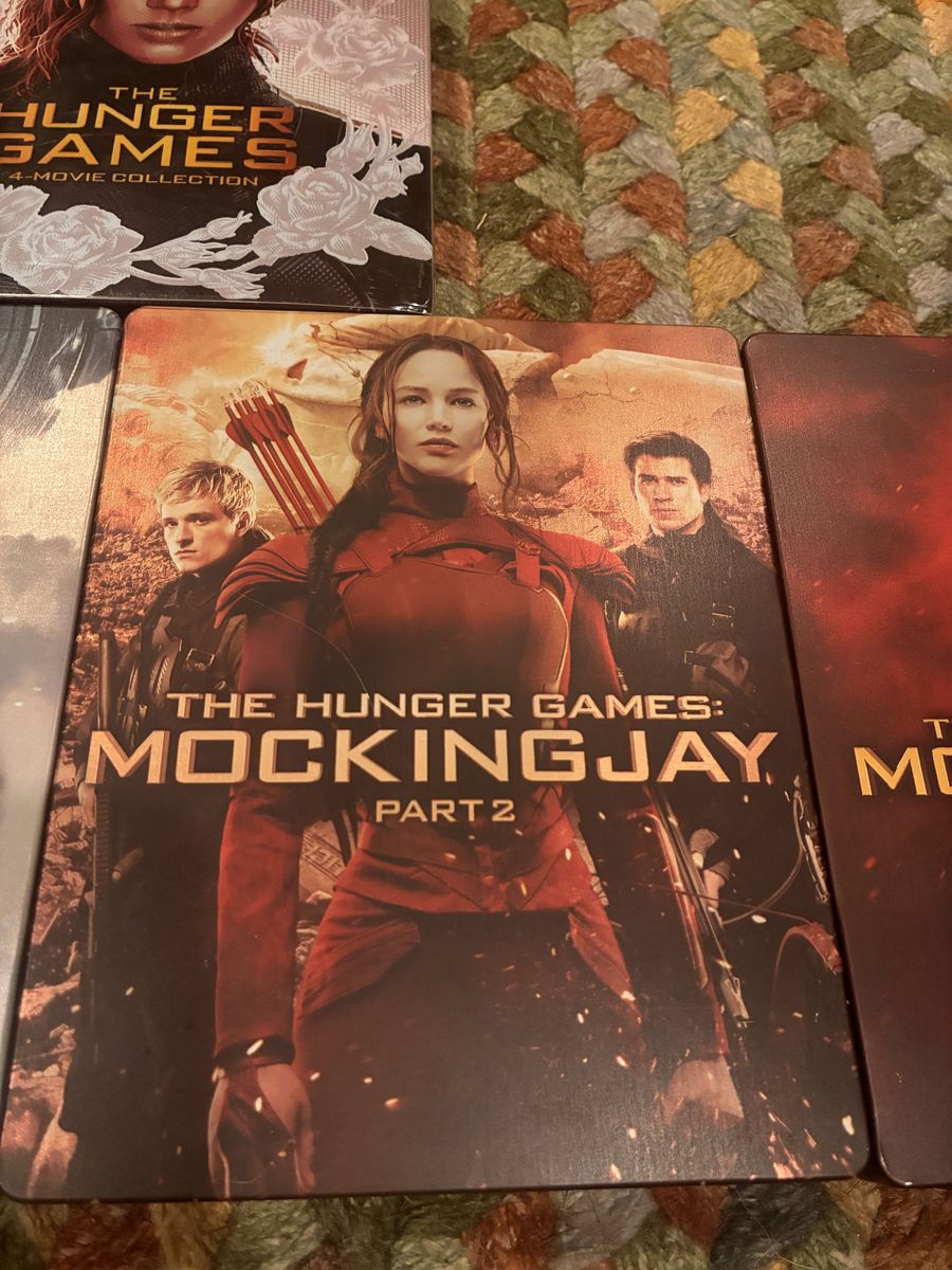 VenmoA lot of steelbooks for The Hunger Games series. 4 individual Blu Ray steelbooks for each movie and a 4K collection steelbook that has 4K copies of each movie in the series as well as additional Blu Ray copies.