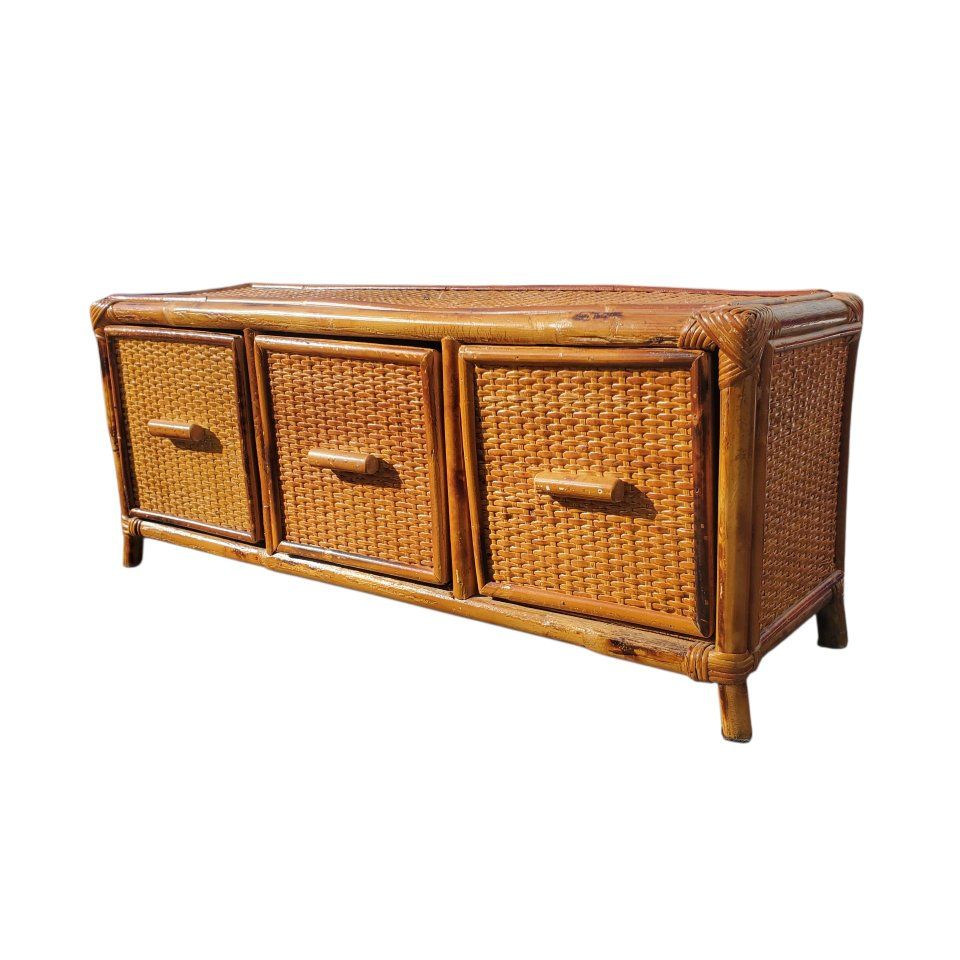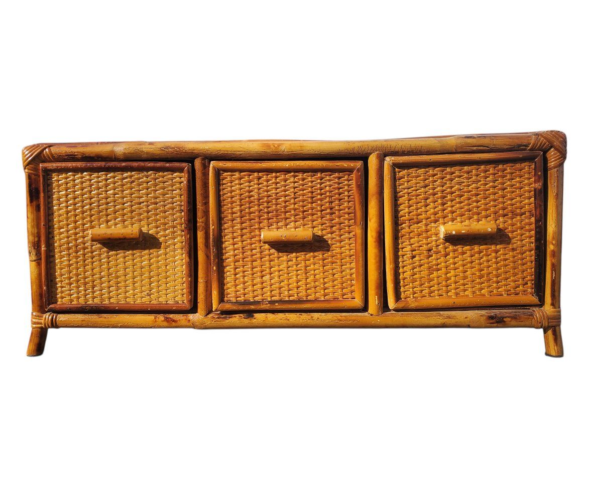 can be used to layer on bookshelves or use on a dresser, or bathroom vanity cane | wicker | rattan | vintage | boho | tortoise wood | jewelry box | organize | coastal