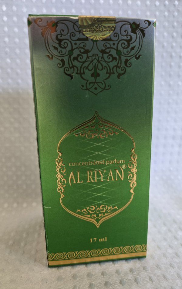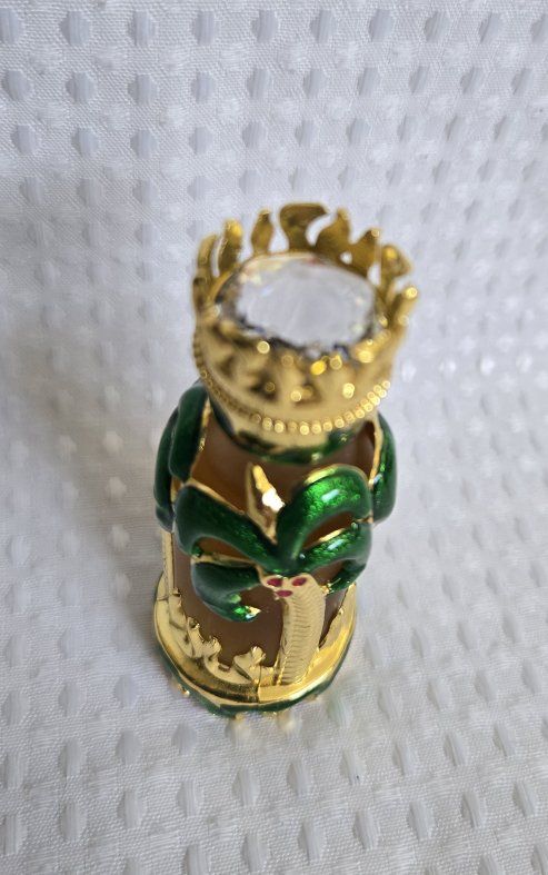 Beautiful DUBAI Khadlaj Al Riyan concentrated oil parfum. This 17 ml bottle is new in box. Bottle has a cool gold and green palm tree design with a crown cap, wonderful for collection. Comes with original box. The oil perfumes last for more than a day. Super delicious, elegant and super concentrated!