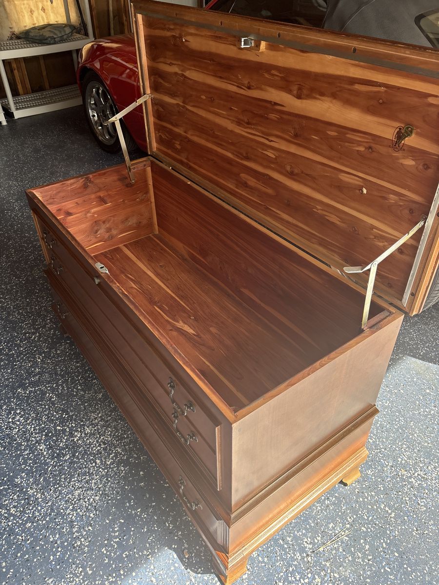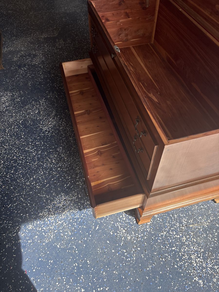 PayPalStunning vintage 1920-1945 Cavalier Furniture Made in the USA. CEDAR CHEST. Great Condition comes with Original Key and Lock. Perfect for Storing blankets and Clothing. Has an Extra Drawer. Solid and Great Quality. Call or Text.