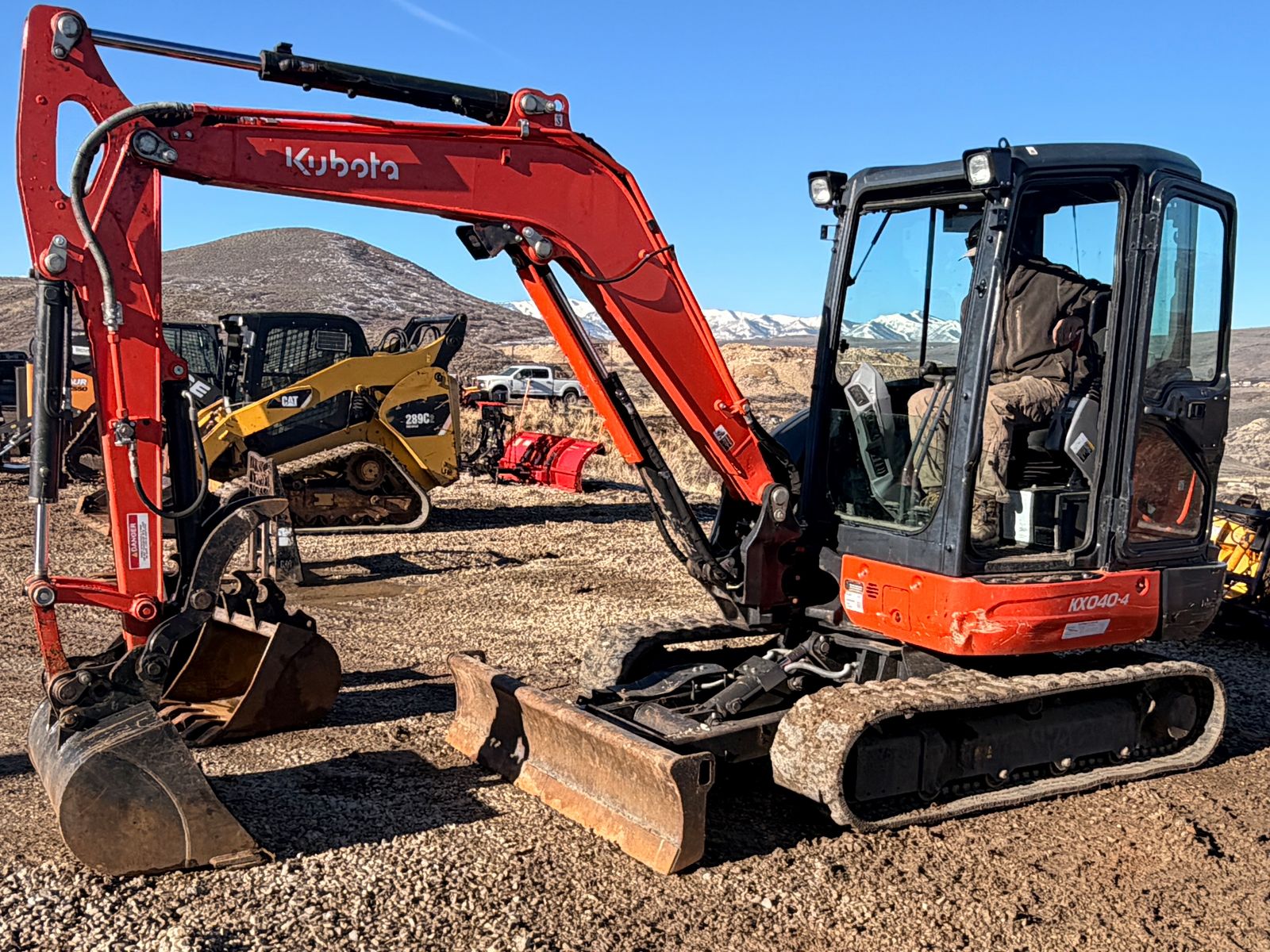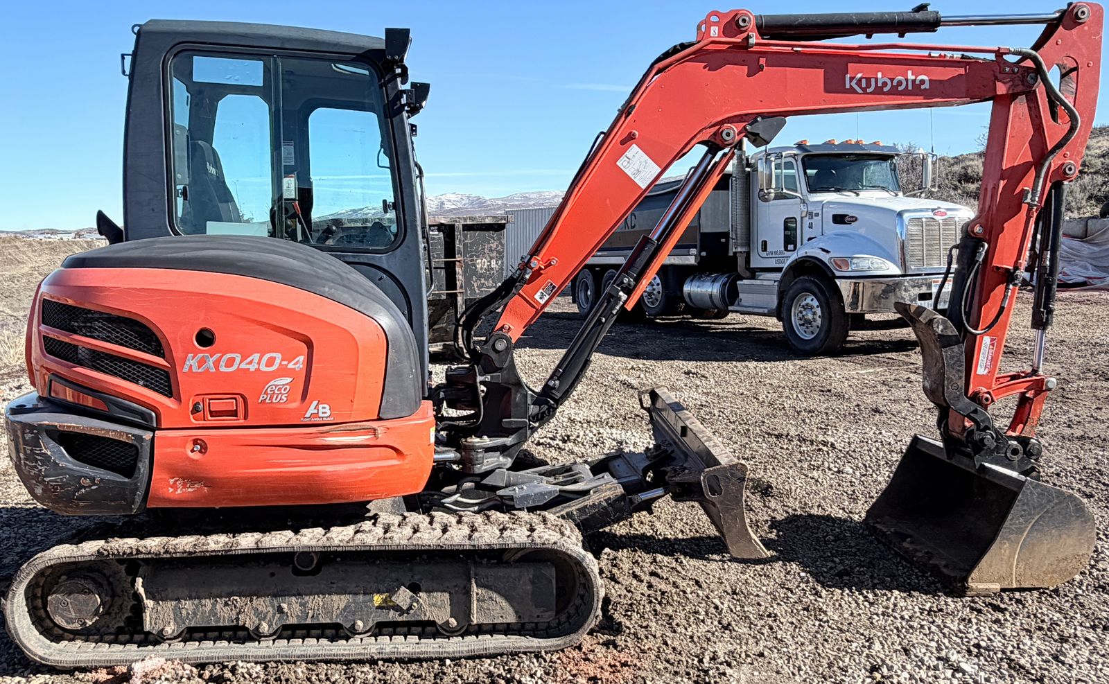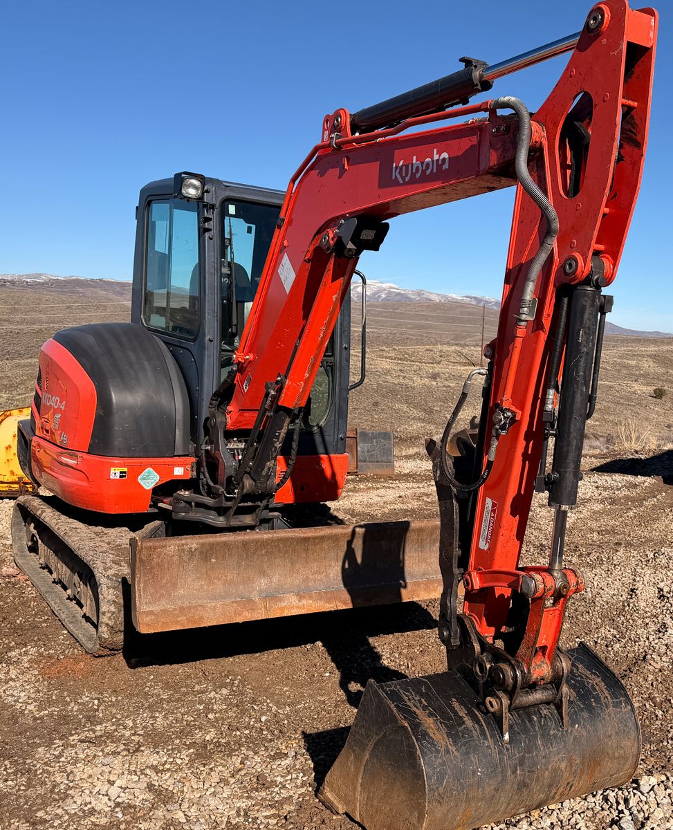 2021 Kubota KX040-4R3A Mini Excavator, 1,695 Hours, Kubota Turbo Diesel Engine, 40.4 HP, 2-Speed Hydraulic Transmission, 14" Rubber Tracks in Good Condition, Joystick Controls, Angle Blade 6-Way Float 68", Hydraulic Quick Coupler, Hydraulic Thumb, 3 Buckets Included: 12" Narrow Trenching Bucket with Teeth, 18" General Purpose Bucket with Teeth, 32" Cleanup/Grading Bucket Smooth Lip, Enclosed Cab with Heat/AC, ROPS, Auxiliary Hydraulics, Operating Weight 9,700 lbs, Video available, Financing Available.