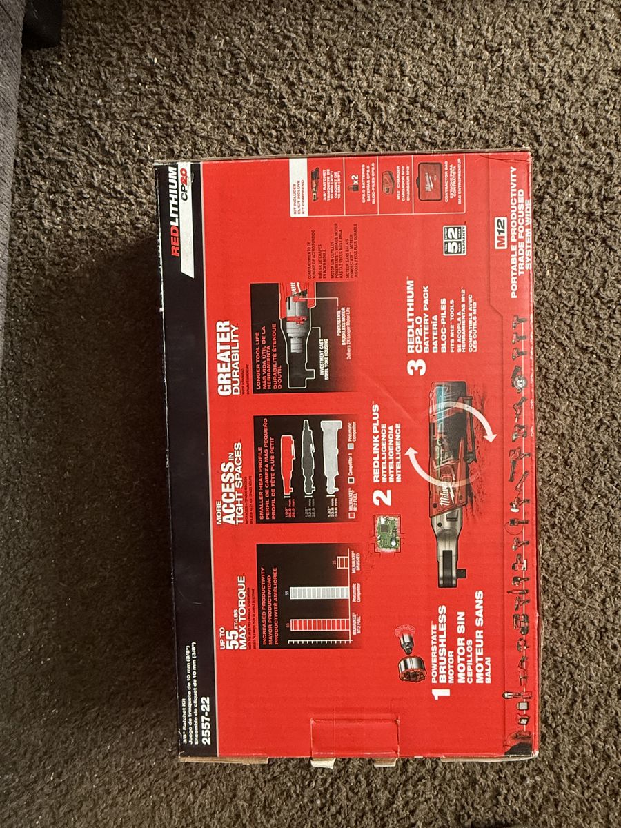 Selling my 3/8 ratchet part number 2557-22 m12 battery comes with ratchet 2 batteries a charger and a bag. BAND NEW. The tool is still on the box with bags and everything that’s how new it is. Selling it for $200 Dollars. once again it’s BRAND NEW.