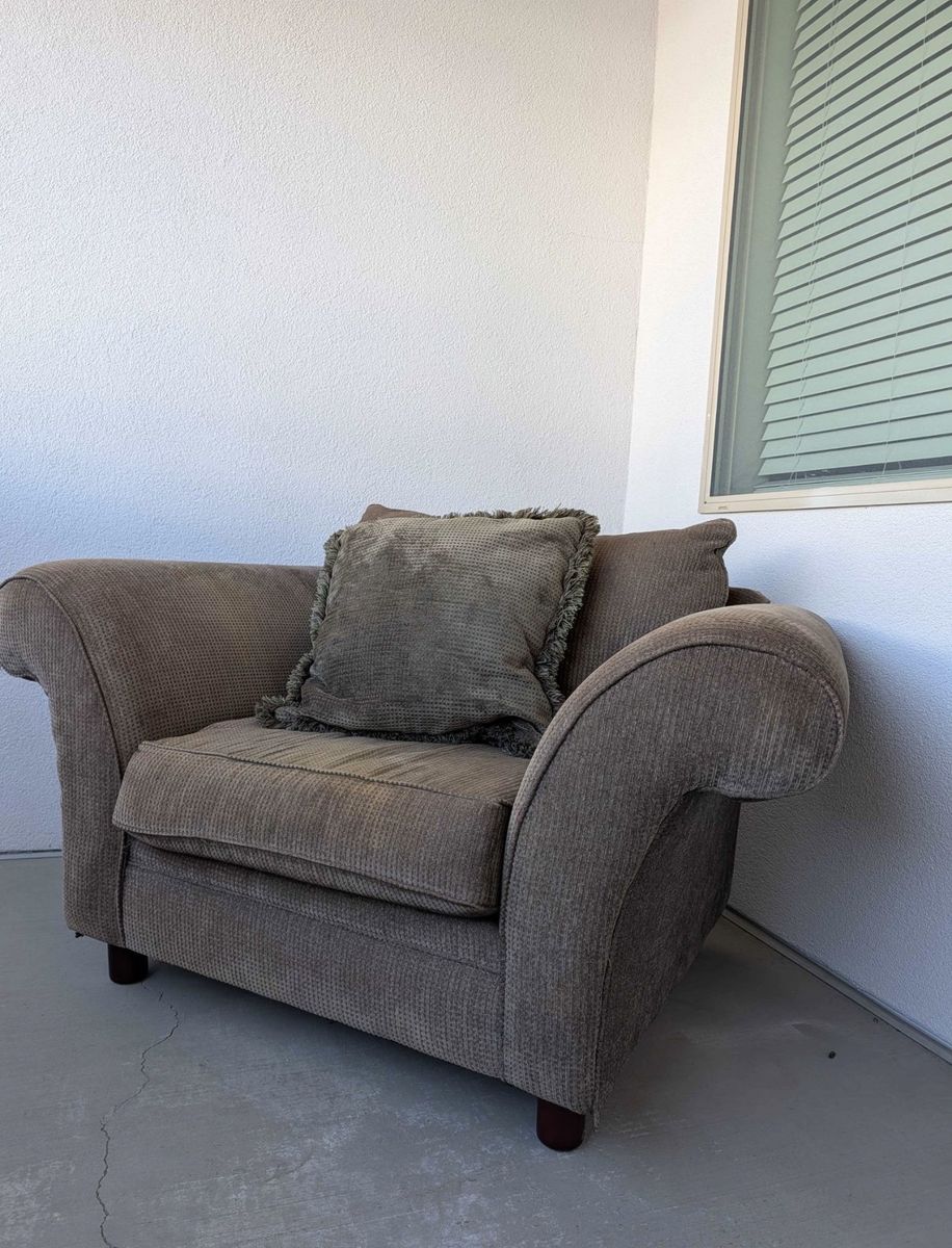 VenmoFcfs Comfy brown loveseat and armchair set. Both pieces have textured fabric. Comes with matching decorative pillows. I will deliver for a fee.