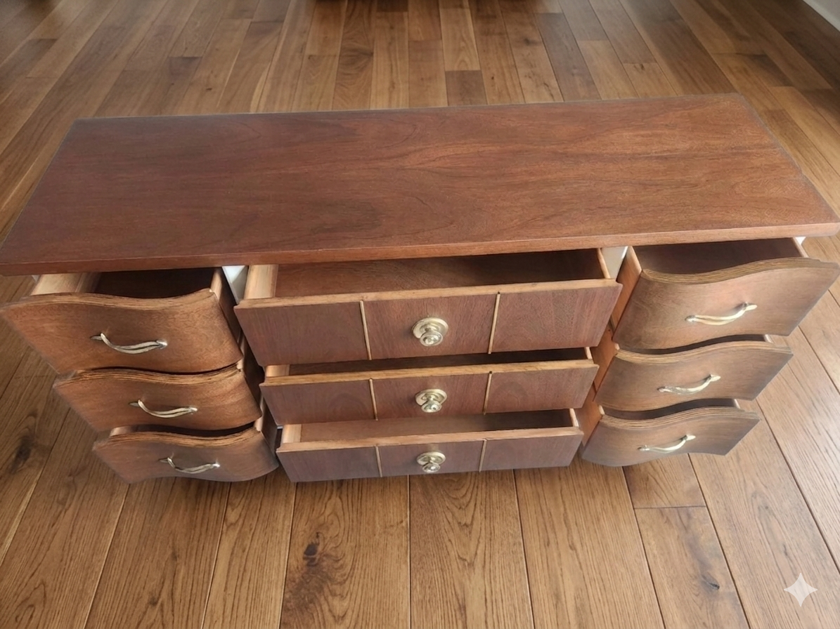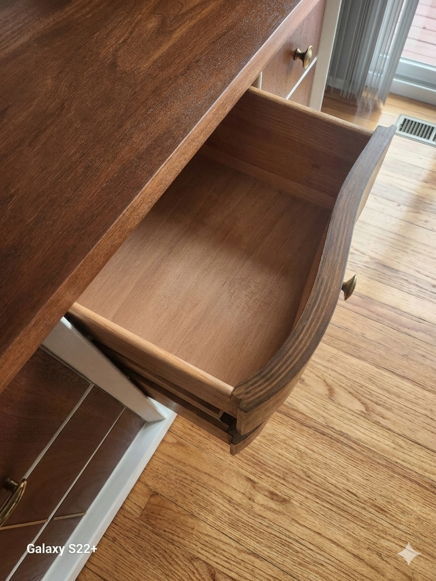 Quality Construction: Solid wood build with smooth-gliding dovetail joinery on all drawers—a hallmark of high-end vintage craftsmanship.