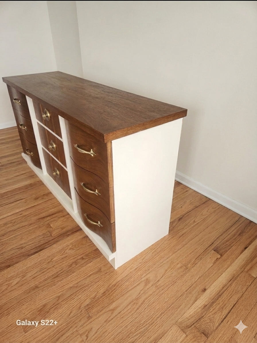 VenmoElevate your space with this beautifully restored vintage dresser. This piece perfectly blends classic mid-century design with a fresh, modern aesthetic.