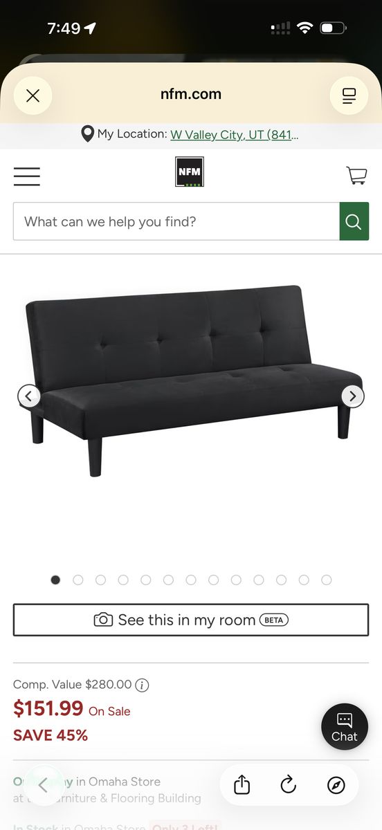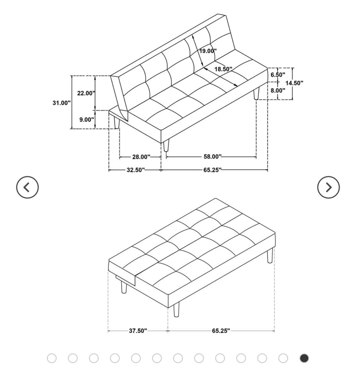 VenmoFcfs. Comfy black futon sofa bed. Great for small spaces or extra guest sleeping. Easily converts from sofa to bed. Has black fabric upholstery. Dimensions as sofa: 65.25 inches wide, 31 inches high, 32.5 inches deep. As a bed: 65.25 inches wide, 37.5 inches deep. I will deliver for a fee.