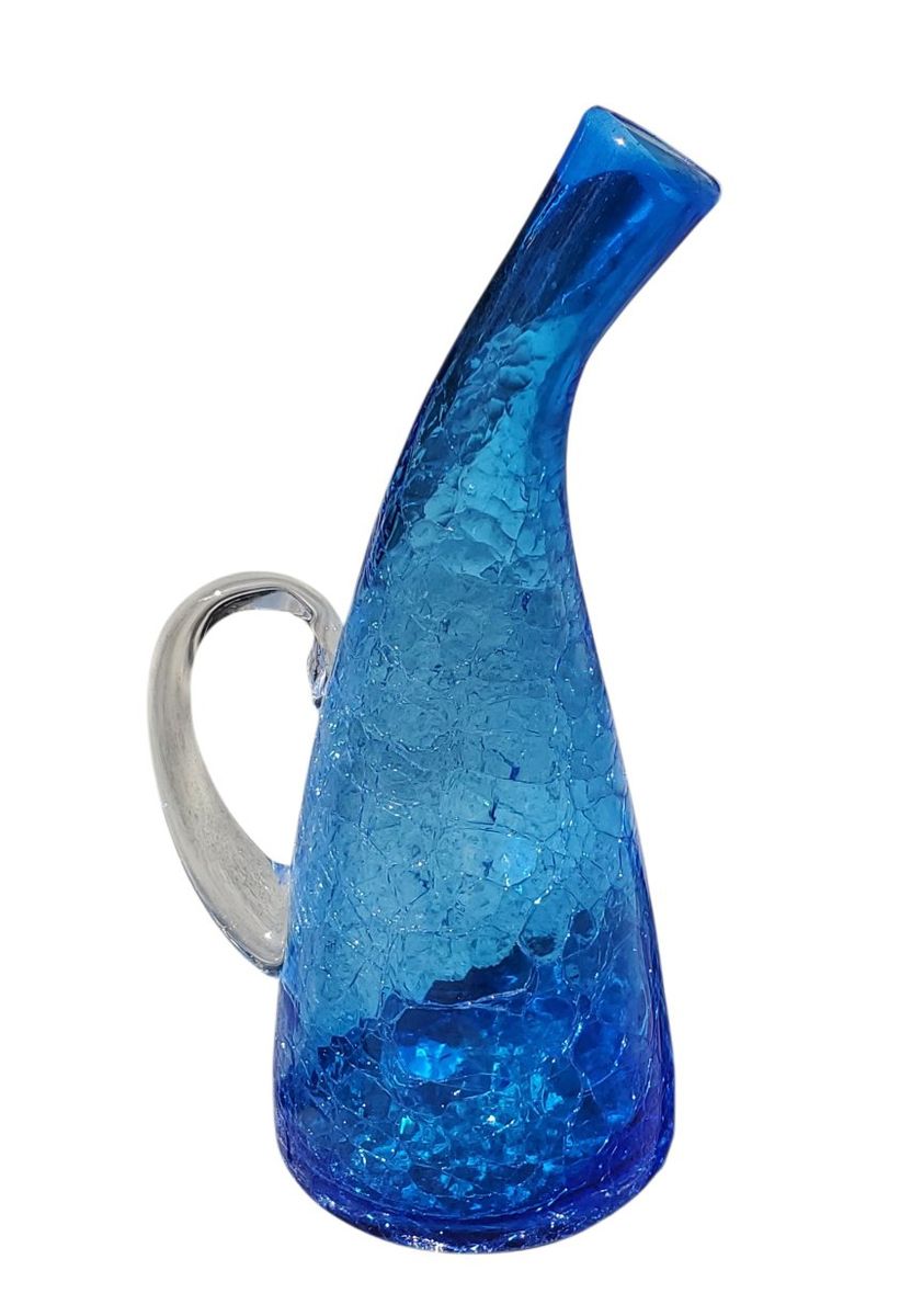 VenmoRoyal Blue Crackle Glass Bent Neck Decanter with Clear Handle