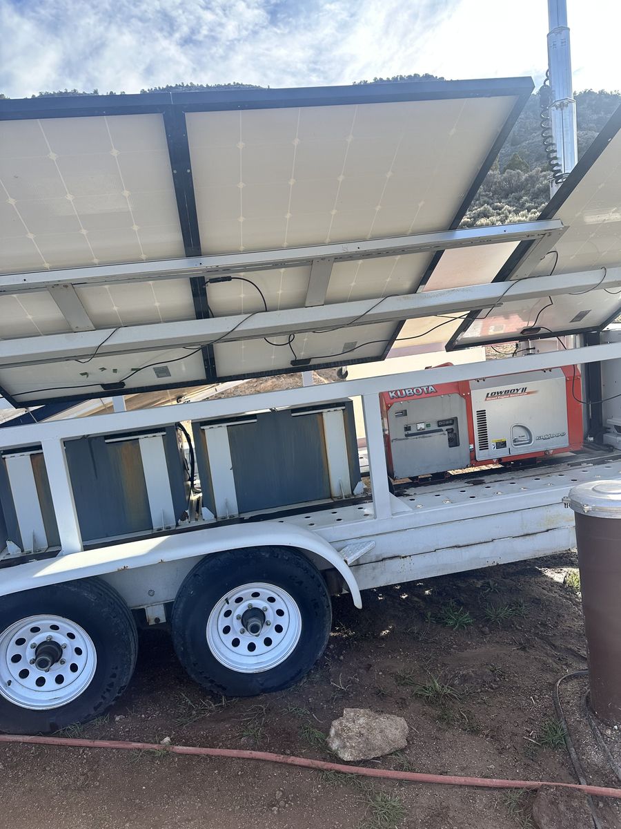 VenmoDC solar trailer in excellent condition. This was the top of the line of all versions of the DC solar trailer featuring heavy duty trailer, Kabota LowBoy II GL 11,000 (436 hours), and light towers. Everything works excellent, the batteries were refurbished a year and a half ago and I upgraded the solar panels with brand new 400 W LG panels. I used this to build my house and now no longer need it. I will not do seller financing and not interested in trades and will not respond to auto generated Facebook messages. located in Enterprise.