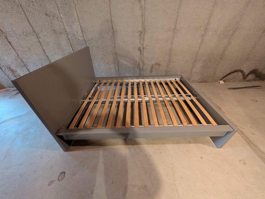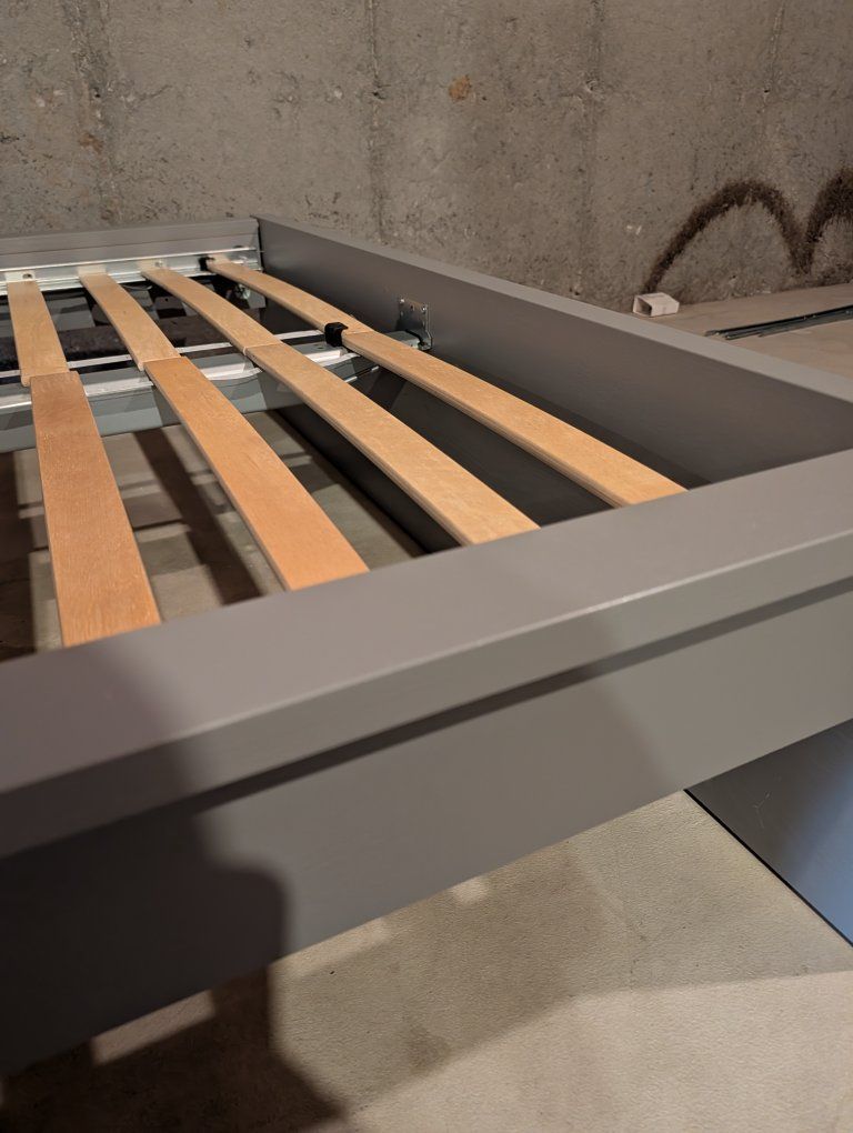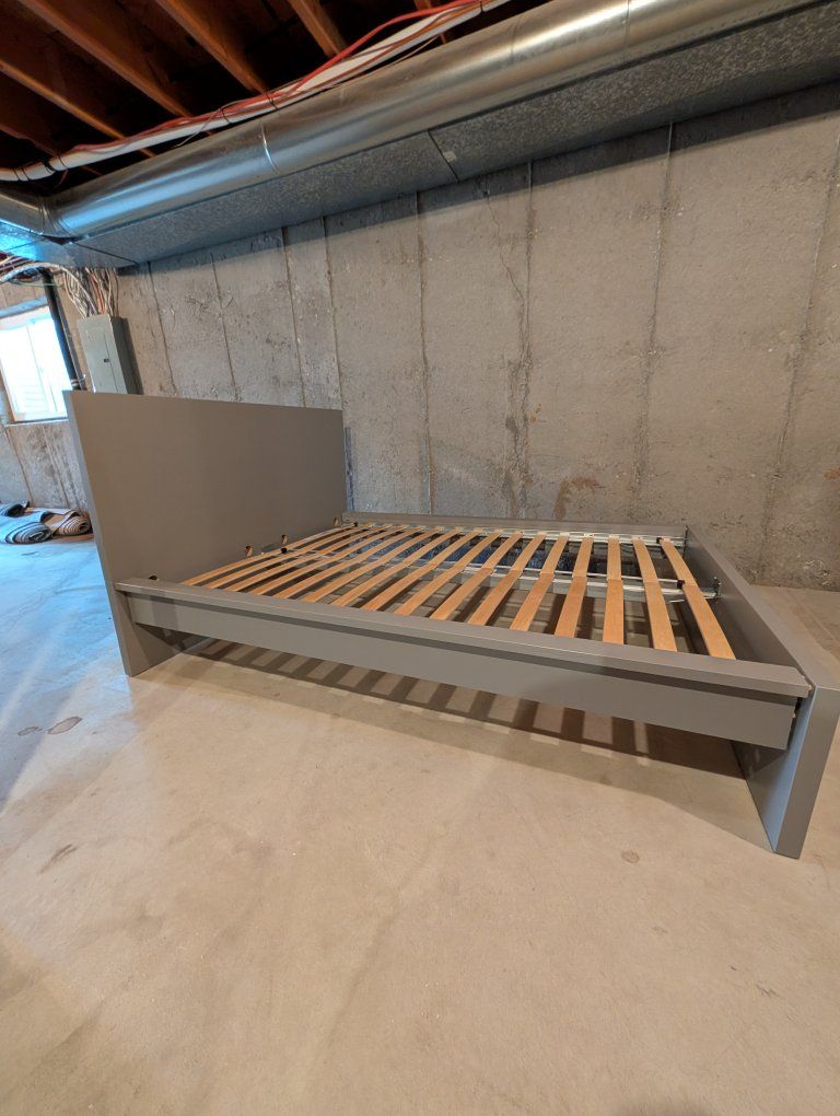 VenmoFull size bed frame with all hardware and mattress support included (no box spring necessary). Gray finish.