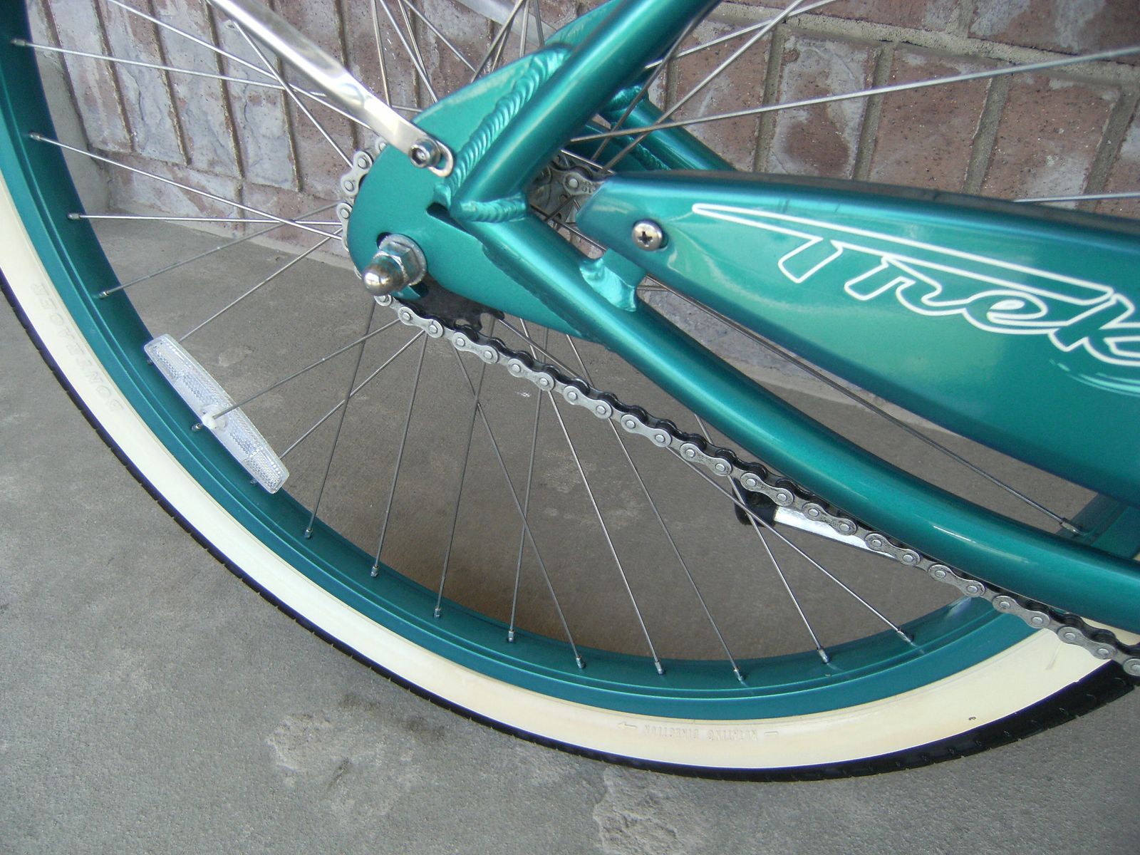 Womens Aluminum Trek Wasabi 26" (wheel size) Beach Cruiser Bike, 1-Speed, Coaster Foot Brakes, Fenders, Kickstand, Medium 17" Frame, Easy Pedal Gearing, Green / Blue.