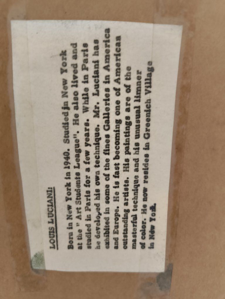 Famous artist Louis Luciani, original oil. perfect condition. with frame measurements are 31x43". Canvas measures 24x36". Probably worth much more but I will take this low price as I don't have time for more research.