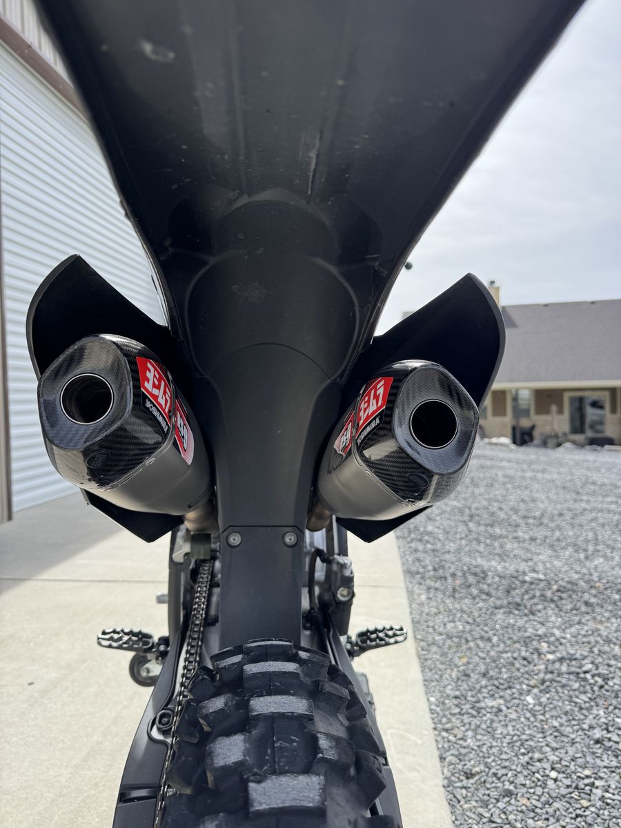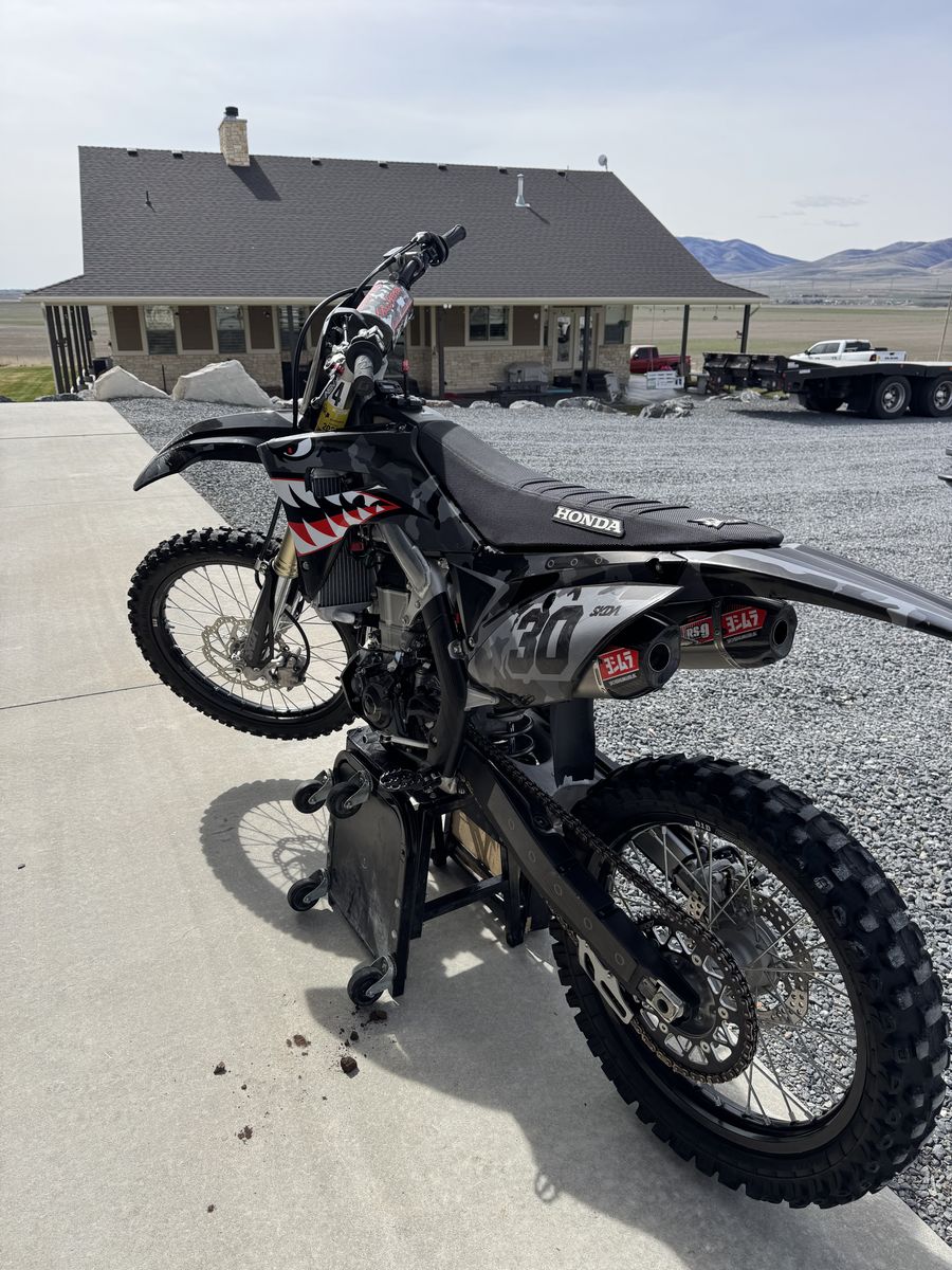2020 CRF 450R NO TRADES •Dual yoshimura RS9 tail pipes with stainless steel head pipe •Black plastics and SKDA graphics •ASV break away levers •Polisport frame and swing arm guards •Dcor grippy seat cover I’ll also be sending another black wheel with it that you can put a paddle tire on. The bike has 135 hours no rebuild, it’s ran so great that there’s no indication that it’s needs to be rebuilt quite yet. Knobby is worn but a back tire isn’t too expensive.