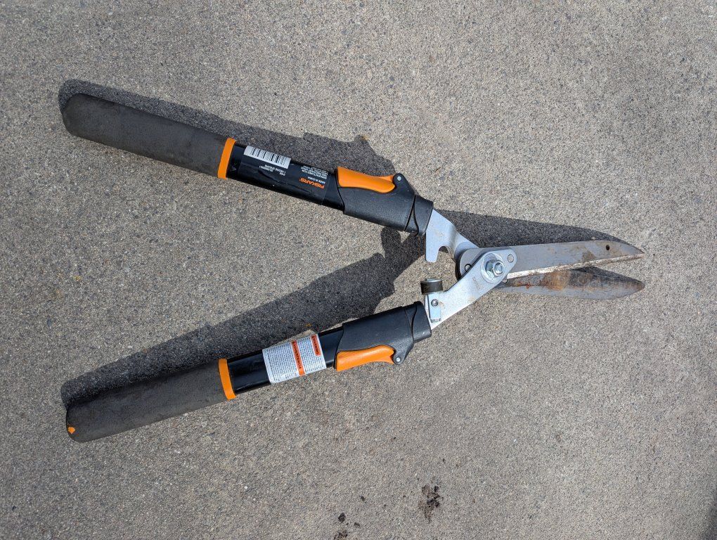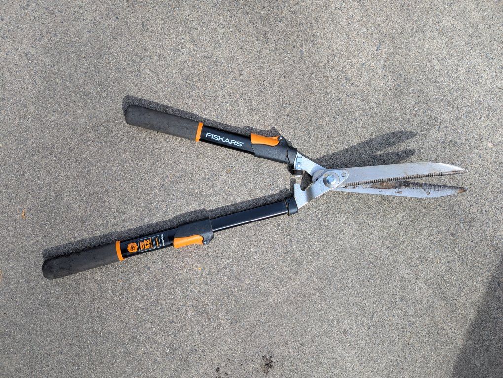 VenmoUp for sale is a lightly used pair of Fiskars Extendable Power-Lever Hedge Shears.