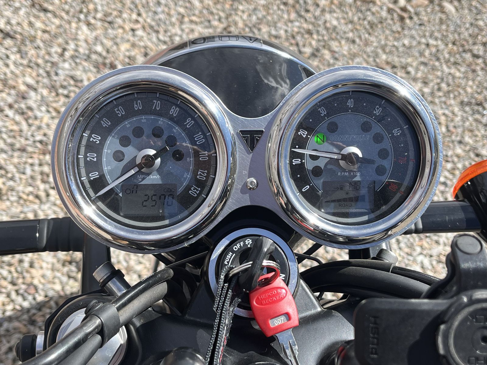 -Triumph T3 bar end round mirrors - stock mirrors also included with sale