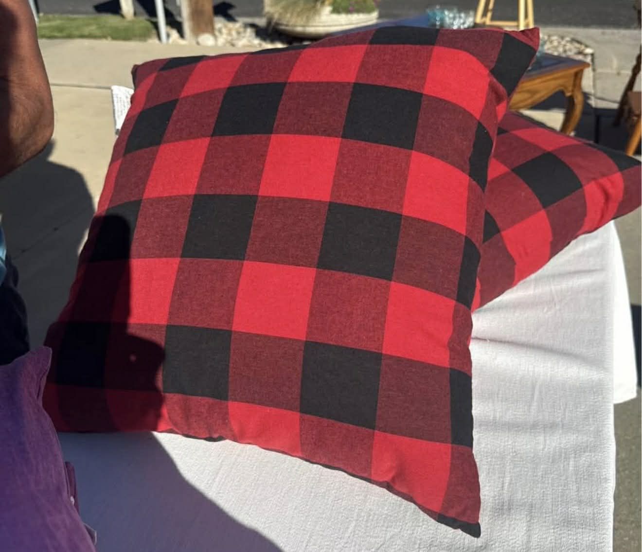 PayPalCozy up your space with this classic pair of red and black buffalo check pillows. Each pillow measures 22” x 22” and is filled with sterilized duck feathers for a soft, full feel. Covers are a durable blend of 80% polyester / 20% cotton — removable and washable.