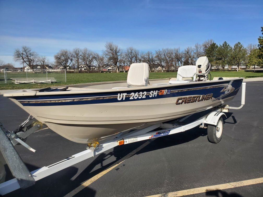 Venmo1998 Crestliner Kodiak 14 foot fishing boat for sale in excellent shape. Boat is powered by a 25 hp Johnson 2 stroke motor. Boat has been lightly used and has been stored primarily indoors. Boat has a Garmin Echomap 73SV fish finder, Minn Kota electric anchor, two seats, pole holders, a boat cover, and an electric transom mount Minn Kota. Trailer equipped with load guides, spare tire, ratchet straps, and a transom saver. Title in hand. Cash preferred. Not interested in trades. $4995 firm.
