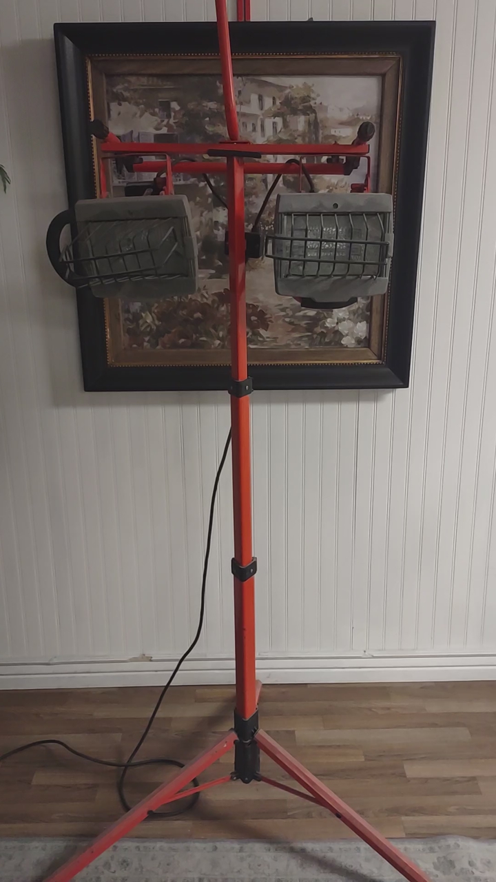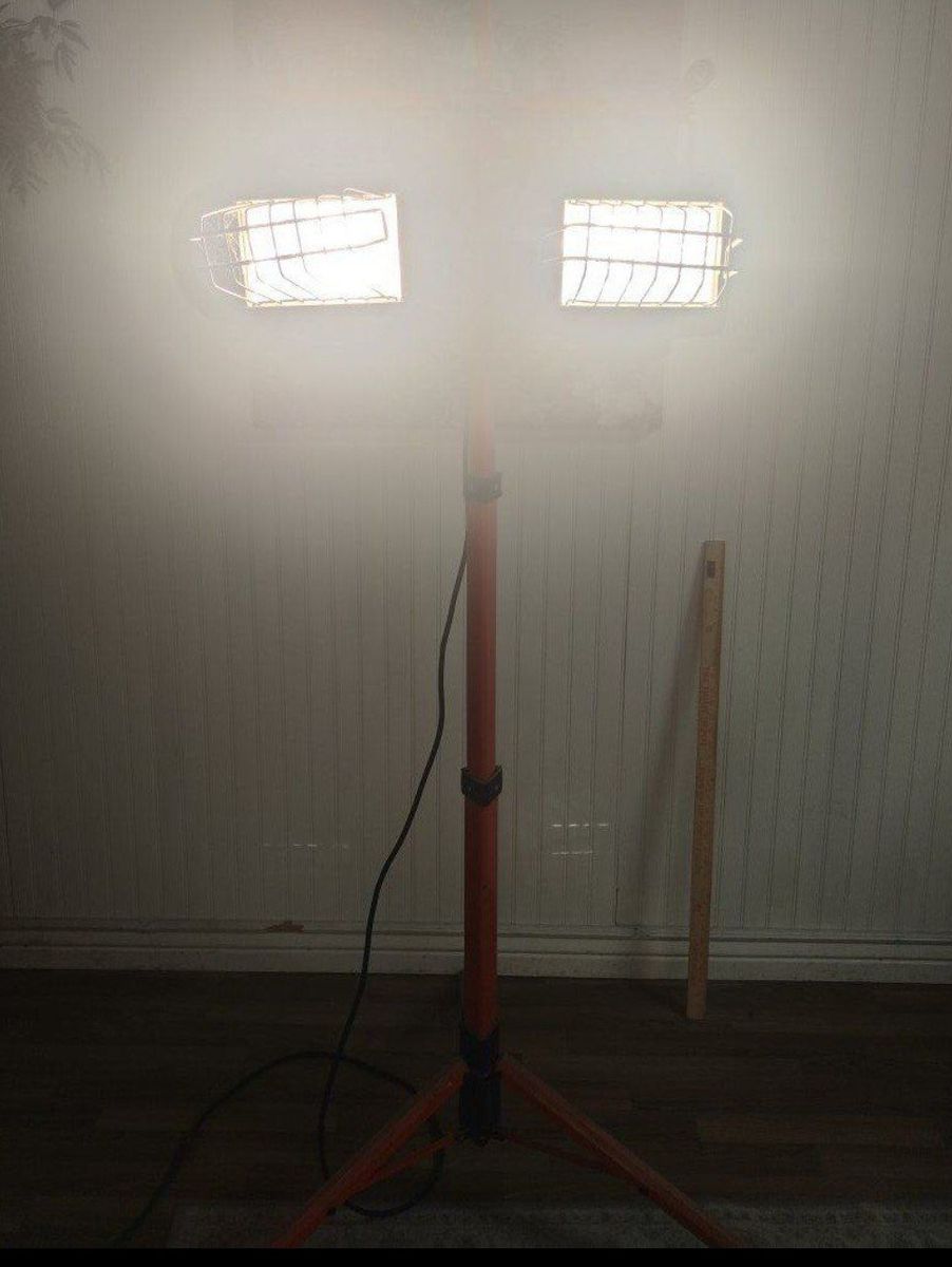 VenmoOpen to reasonable offers!High-intensity dual halogen work light on a sturdy, adjustable tripod. Perfect for garage projects, home renovations, or late-night yard work. Dual Adjustable Heads: Tilt them independently to light up two areas at once. Telescoping Stand: Adjustable height; folds down for easy transport/storage. Heavy Duty: Metal construction with protective wire cages. Condition: Used but solid. Fully functional and ready to work.
