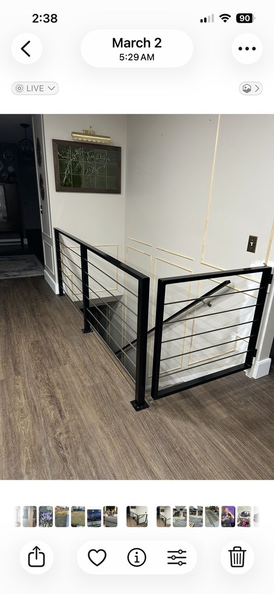 97 inches long 36 inches tall. Black powdered coating with stainless steel bars comes with locking gate. $400 OBO