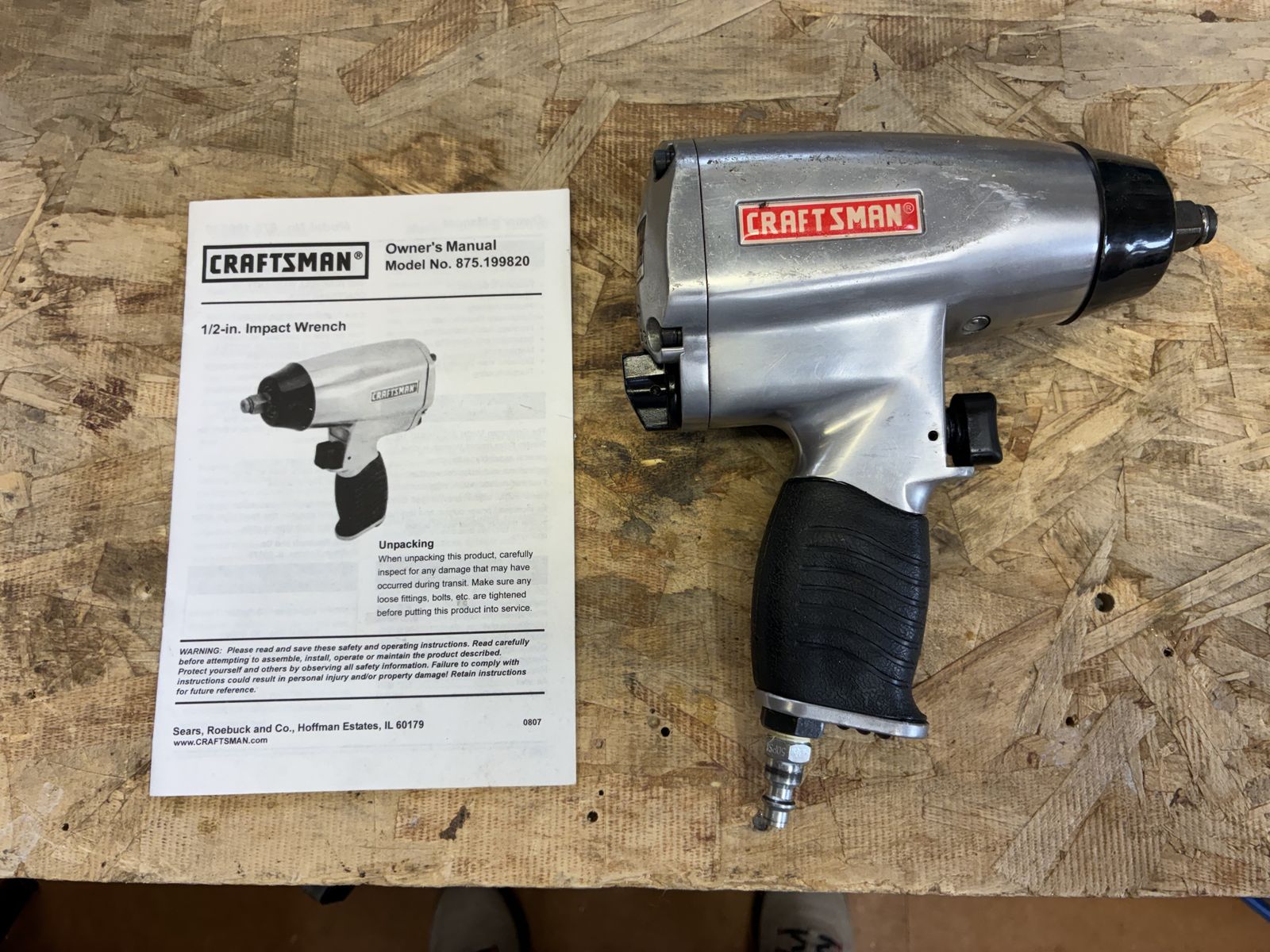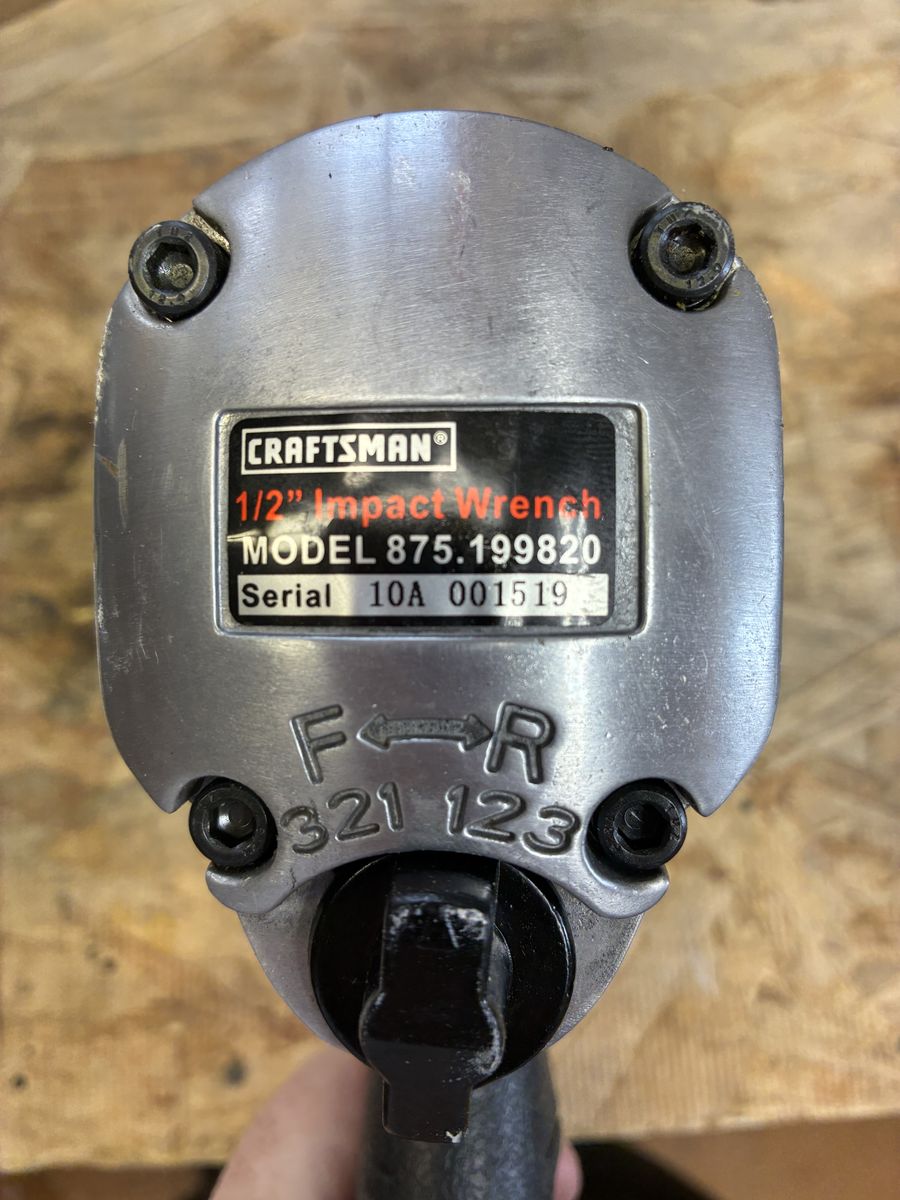 Craftsman 1/2" pneumatic impact wrench. I think I used it once. Just taking up room in my shop. Few minor scratches on it, otherwise perfect. Has manual.