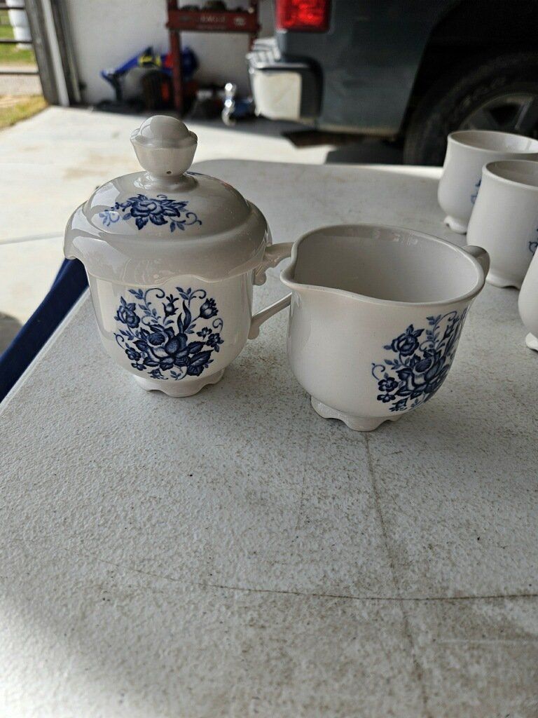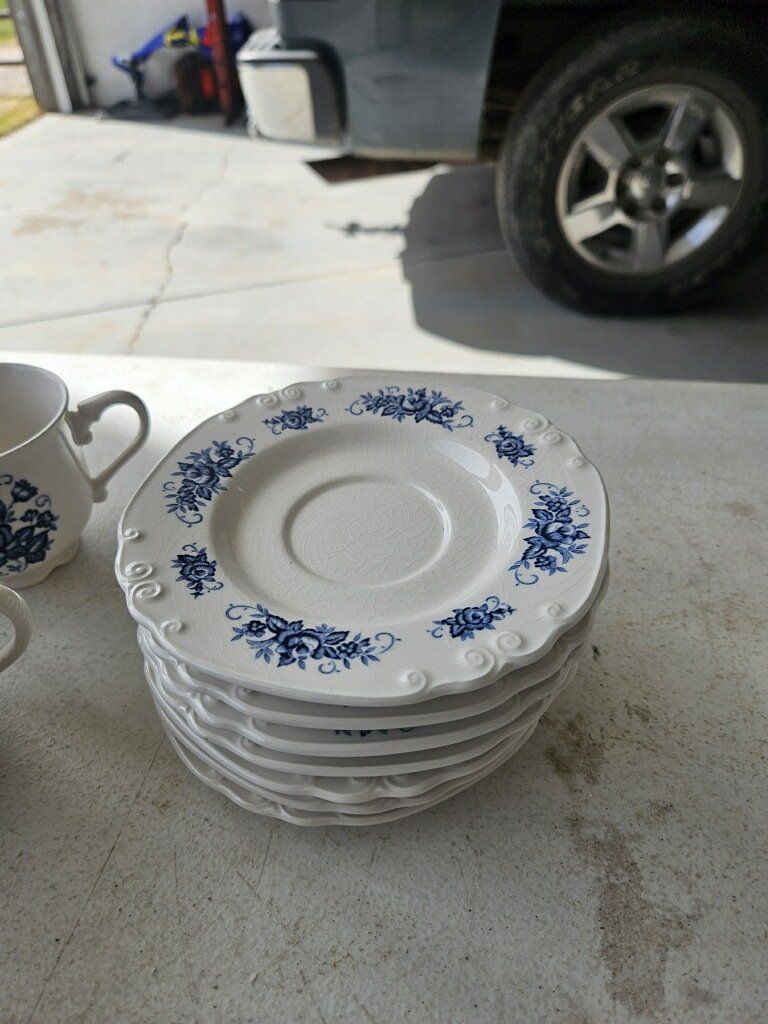 9 big plates 7 saucers 5 salad plates 8 cups Cream and sugar bowls salt and pepper shaker And a random jar that was with it. $100 OBO.