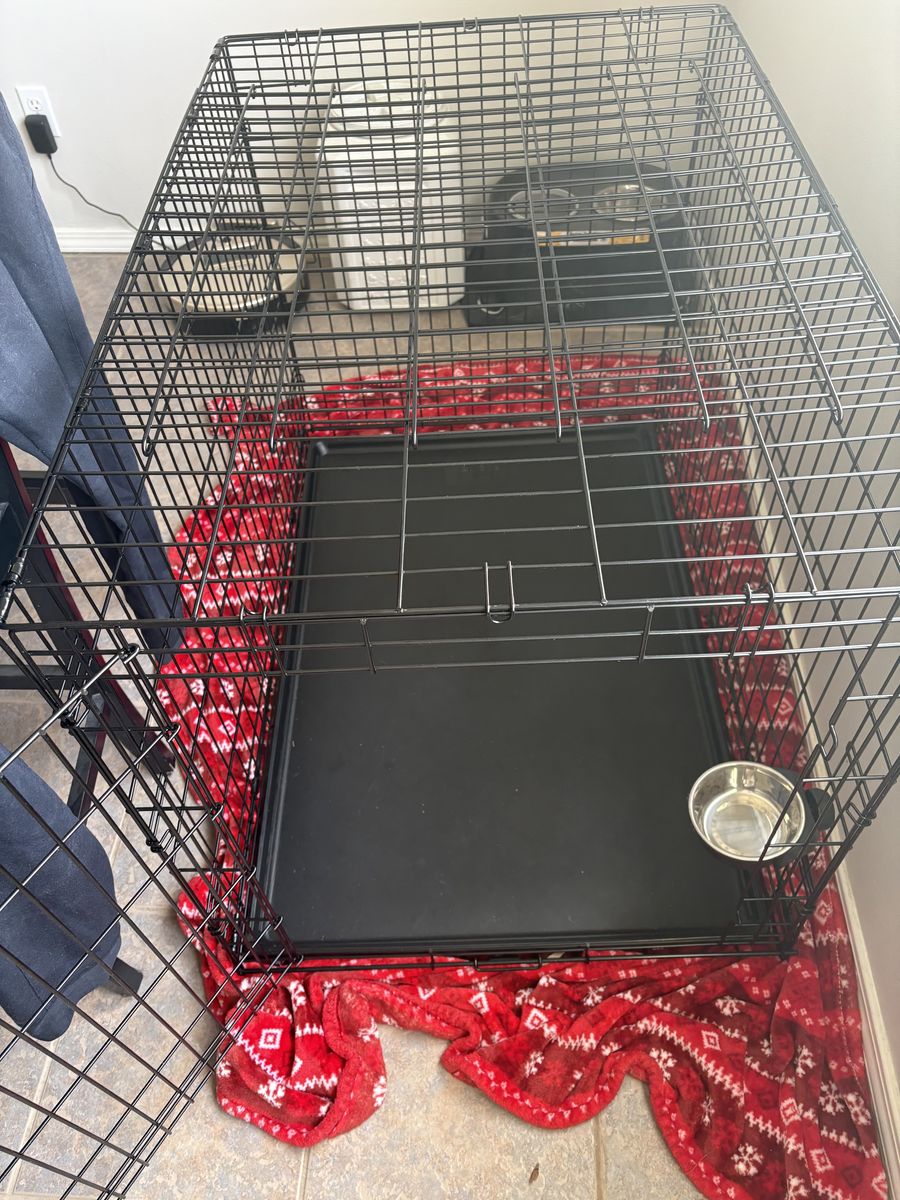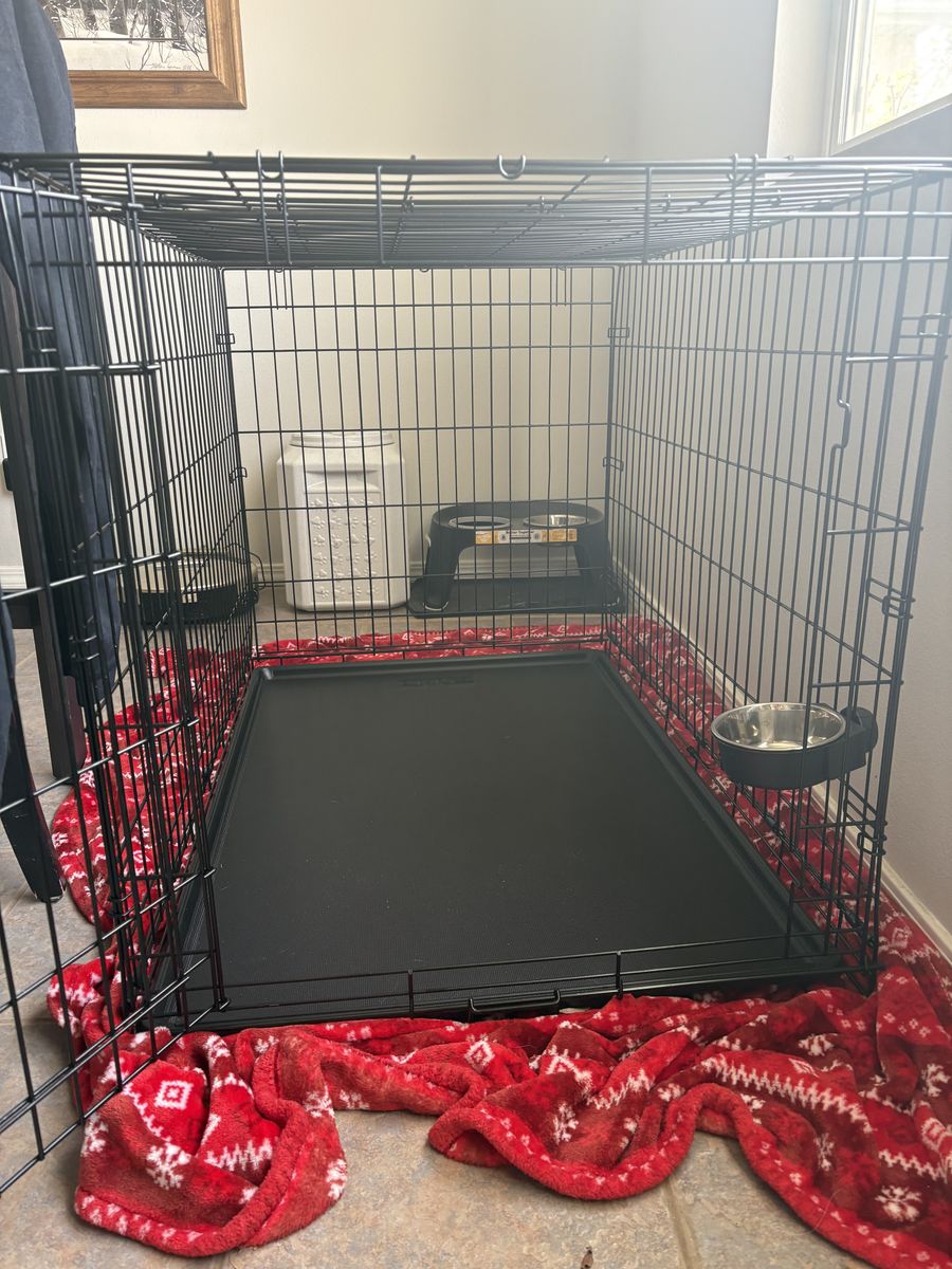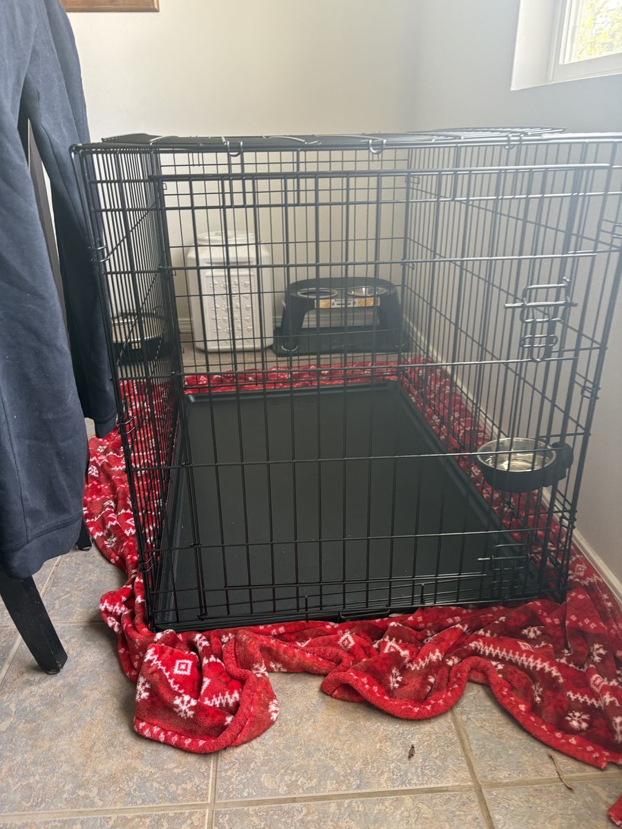 EverYay 1 Door XL Dog Kennel for sale. Divider included to make kennel smaller. Small attachable water dish can be included along side slow feeder if requested.