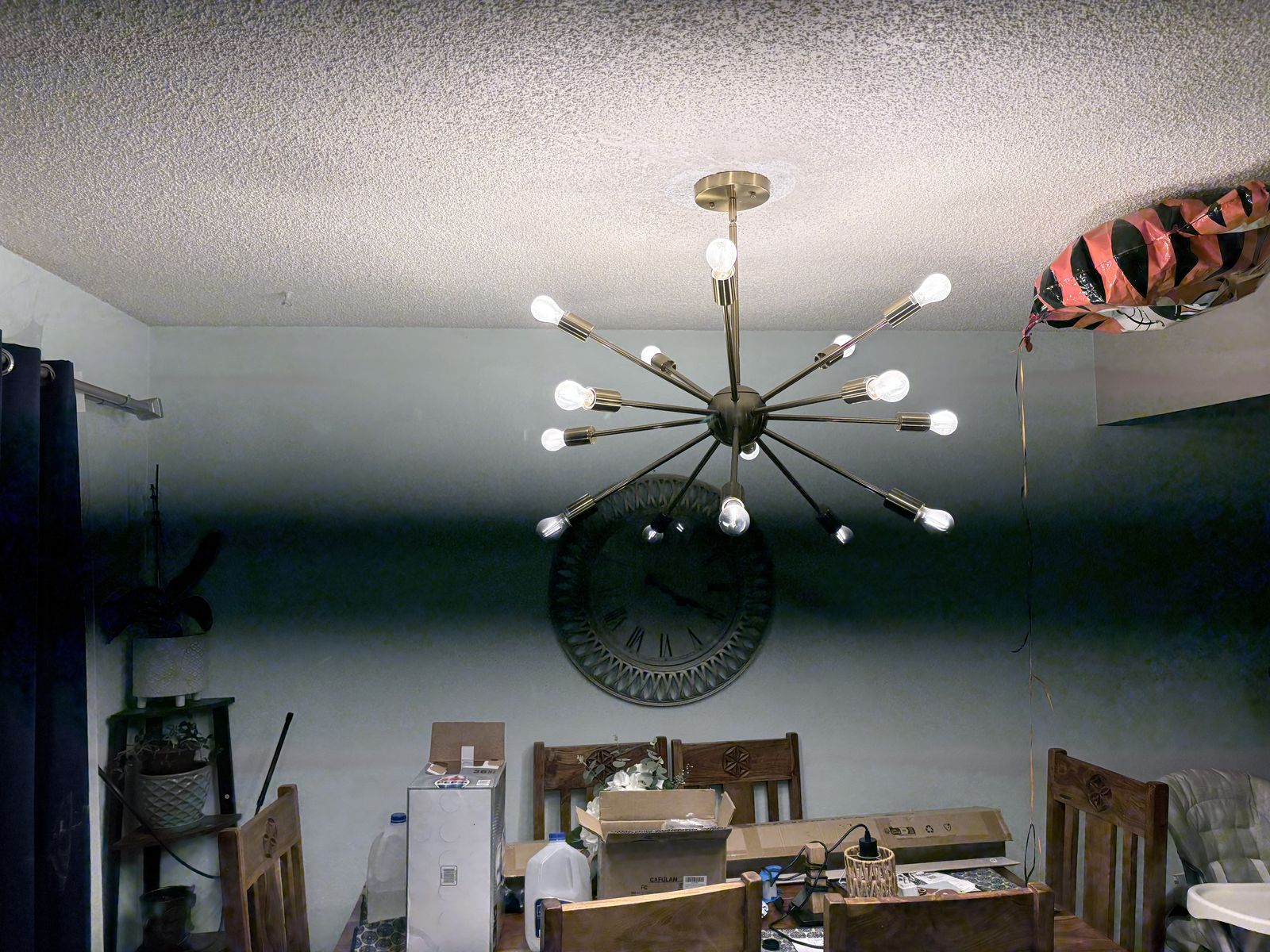 VenmoHeight adjustable, gold finish. Great condition with all pieces. Selling because we purchased a new light. 18 lights with bulbs.