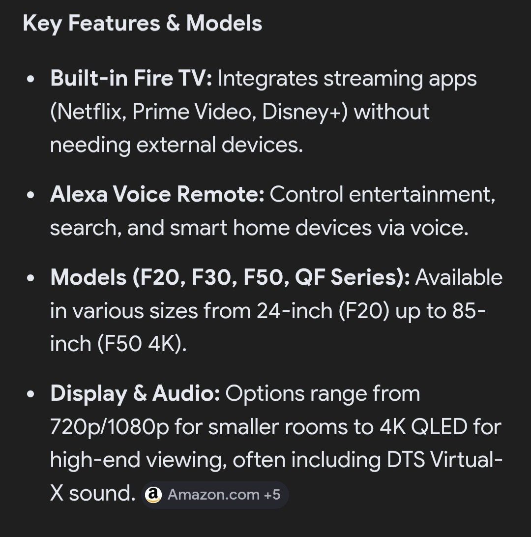 VenmoInsignia Fire TVs are budget-friendly smart TVs (32” to 85”+) featuring built-in Amazon Fire TV. The TV worked very well still! the only thing wrong is the remote, the button to control the cursor is broken so we've had to use an incent stick for it. I accept cash or venmo, needs to go.