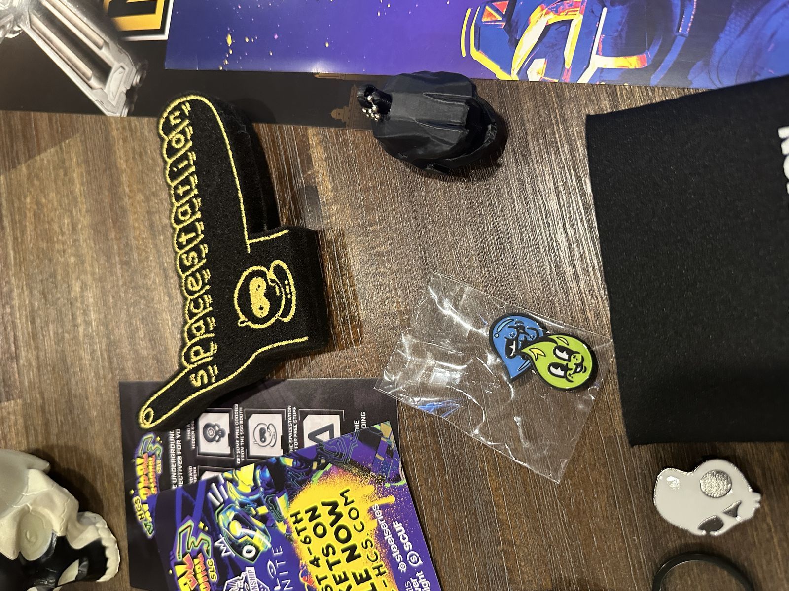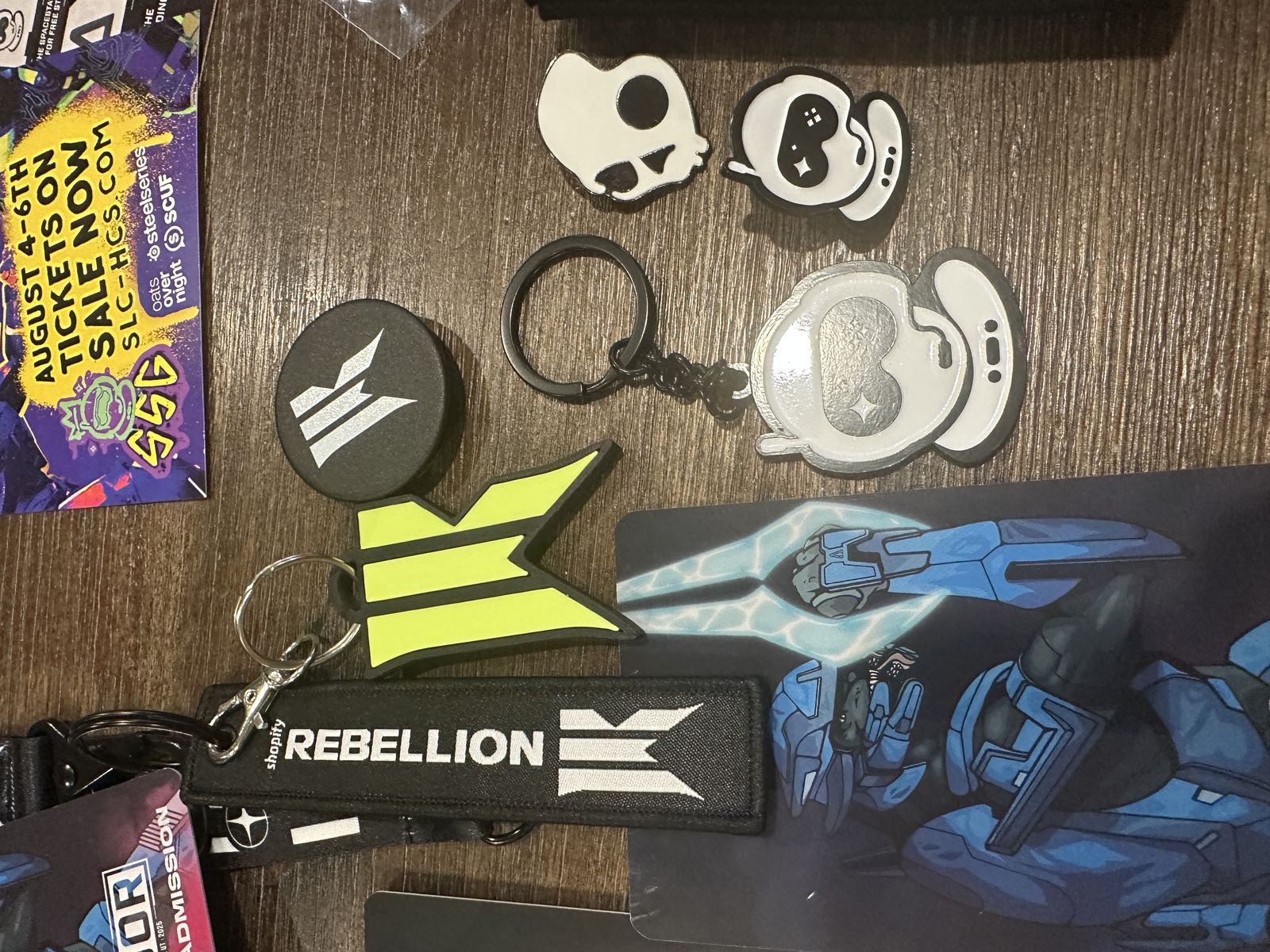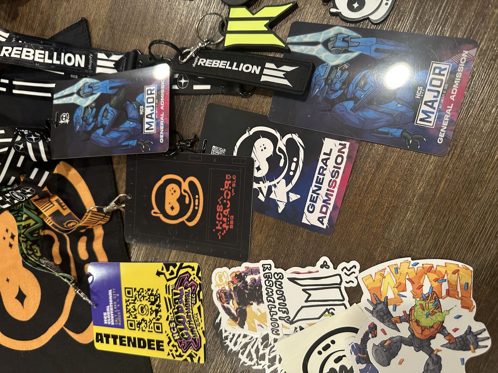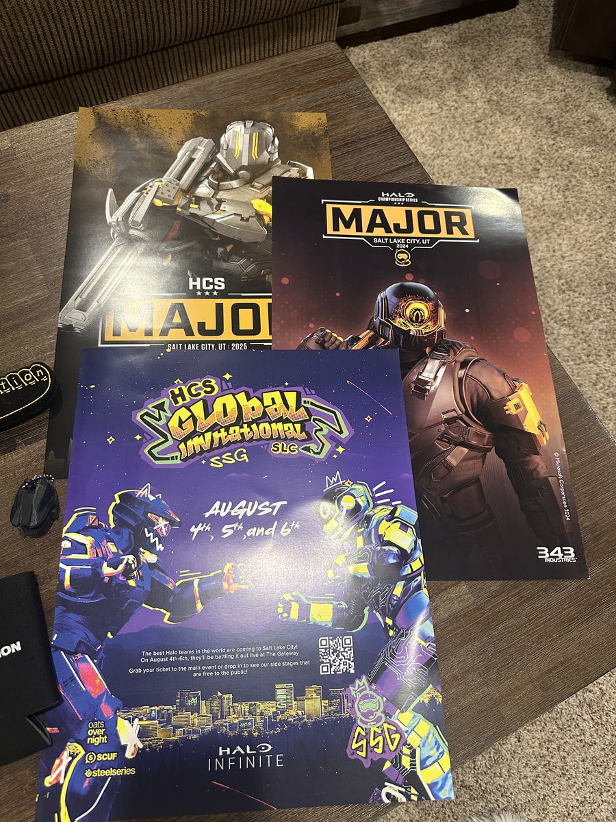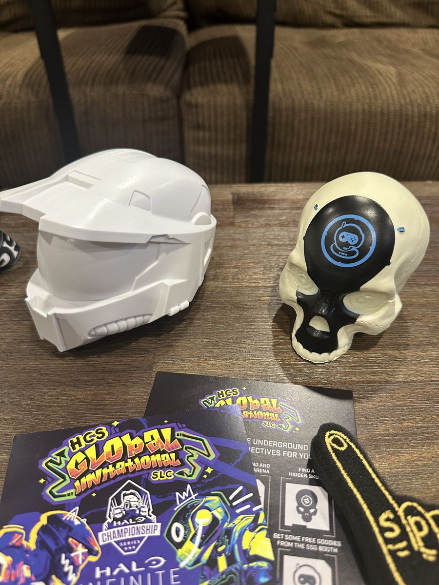 VenmoThis is a collection of HCS Halo Championship Major accessories and memorabilia, gathered from multiple events over the years. Included are 5+ lanyards and badges, dozens of stickers, Spacestation flags and swag, a variety of pins and keychains, a 3D-printed Master Chief helmet, foam skull, multiple posters, foam hands, and more.