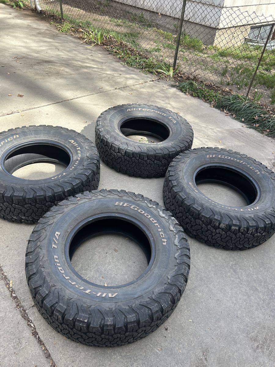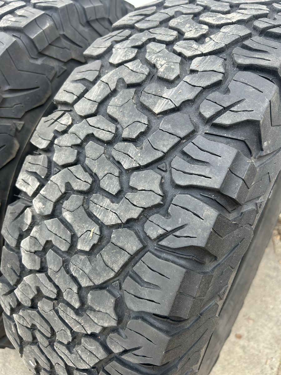 Great set of KO2s. No flats, no patches, just over 1/4 tread remaining. Load E. Took them off a Tacoma 2 weeks ago. Upgraded to a larger tire.