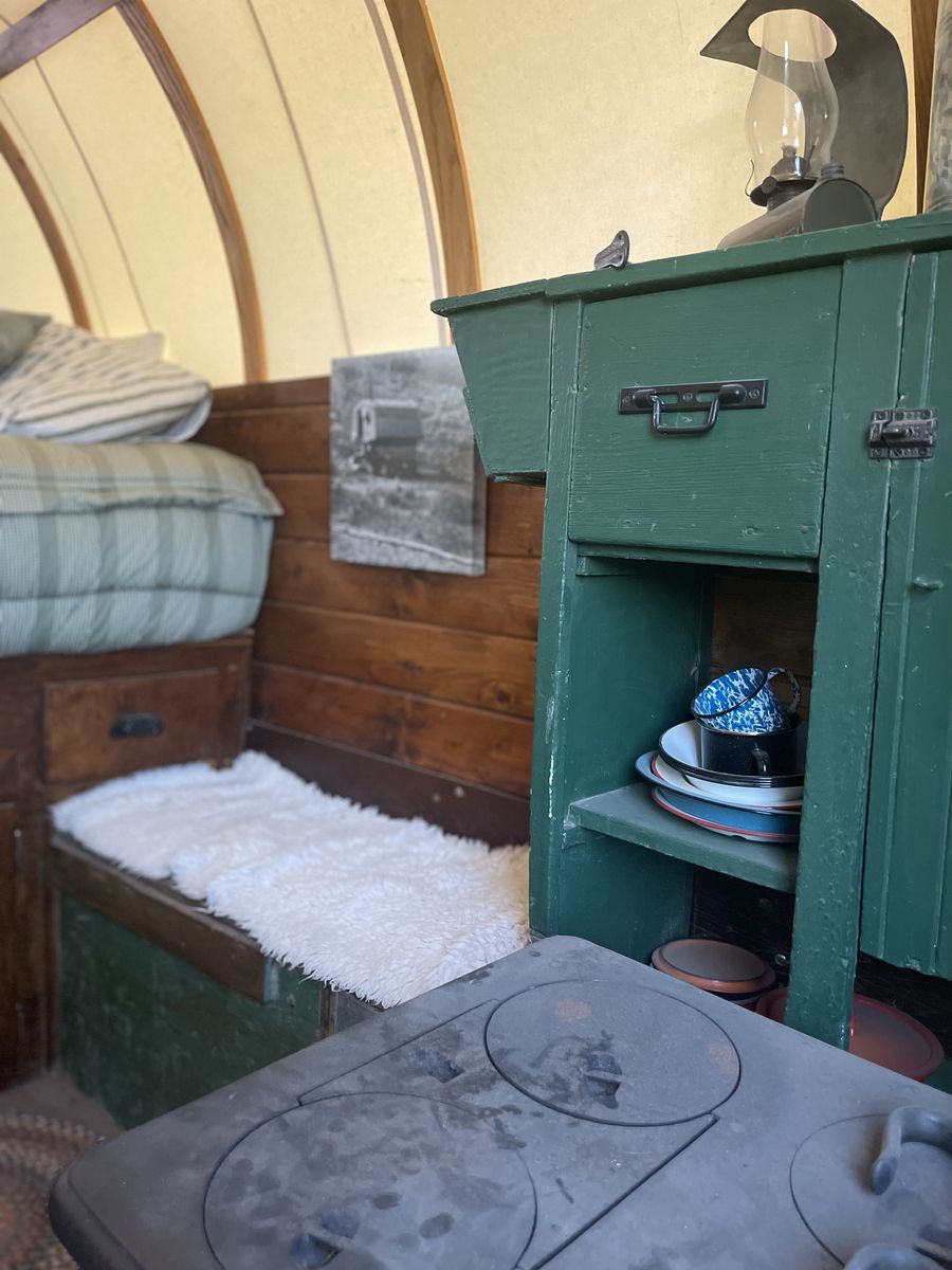 VenmoI restored this camp with new bows, a new gel mattress including the “Beddies” bedding. Double layered canvas. I tried to keep everything as original as possible. I did set the bows higher than most camps so tall people could stand up in it. The stove is good. It still needs the chimney installed and if you want to do that yourself, I will knock some off the price. This is a great camp!