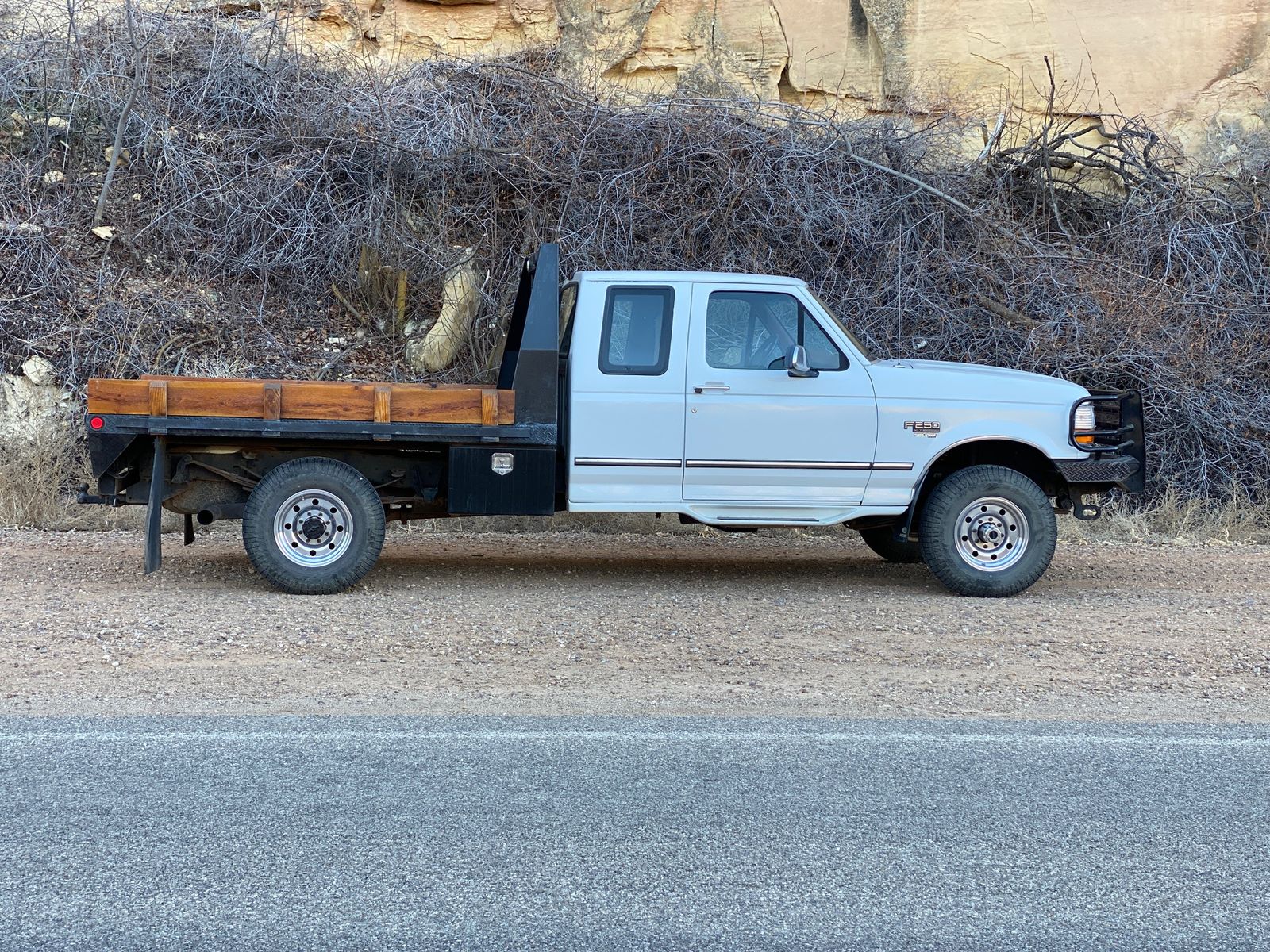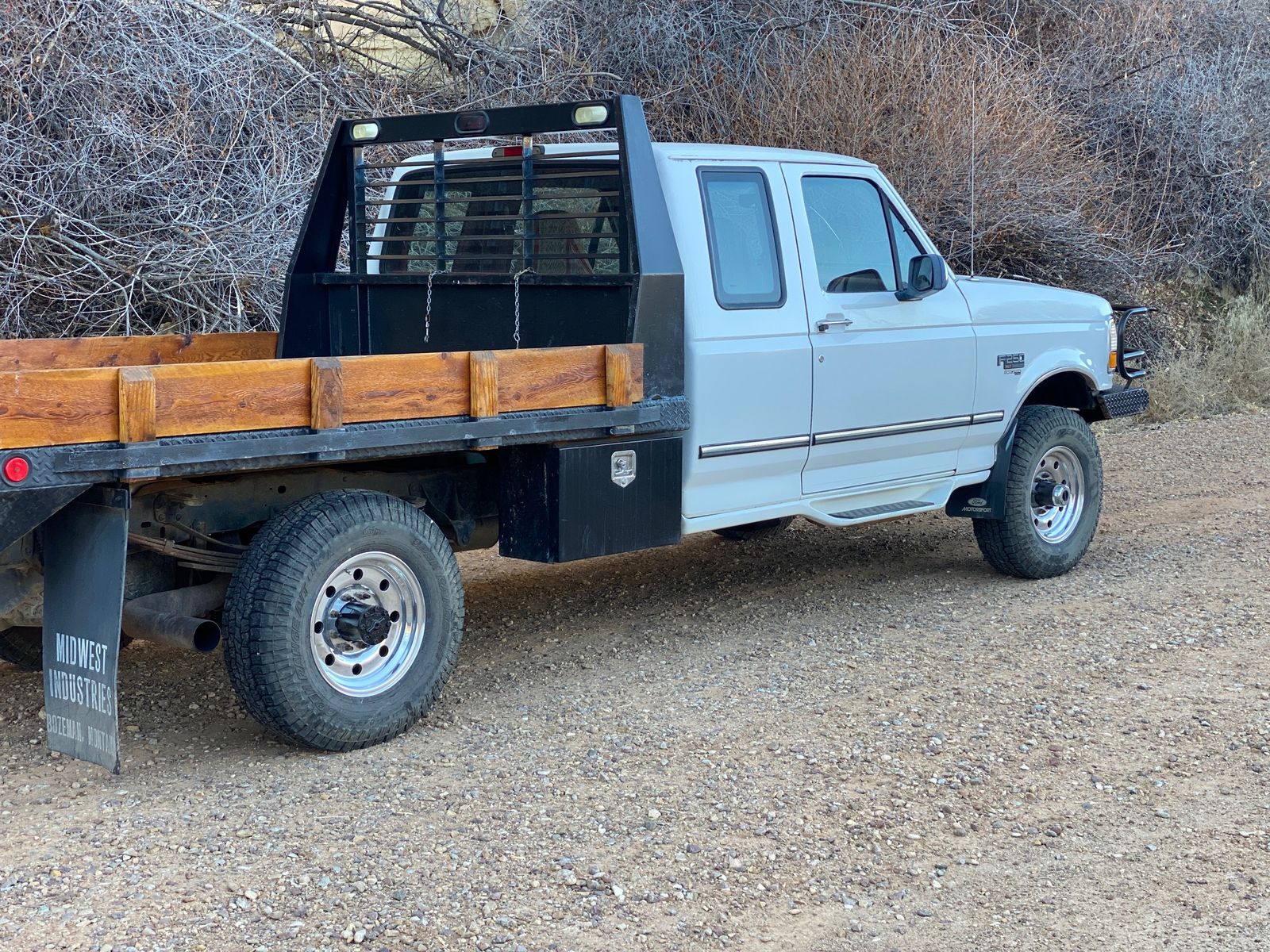 Ranch Hand front bumper, Riley Flatbed with Horseshoe Brand underbed toolboxes. Alcoa aluminum wheels. New tires bought just over a year ago.