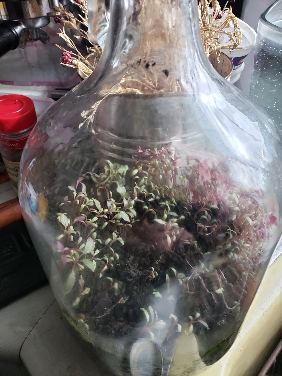 Brighten up your kitchen, bathroom or desk with this one-gallon glass bottle terrarium.