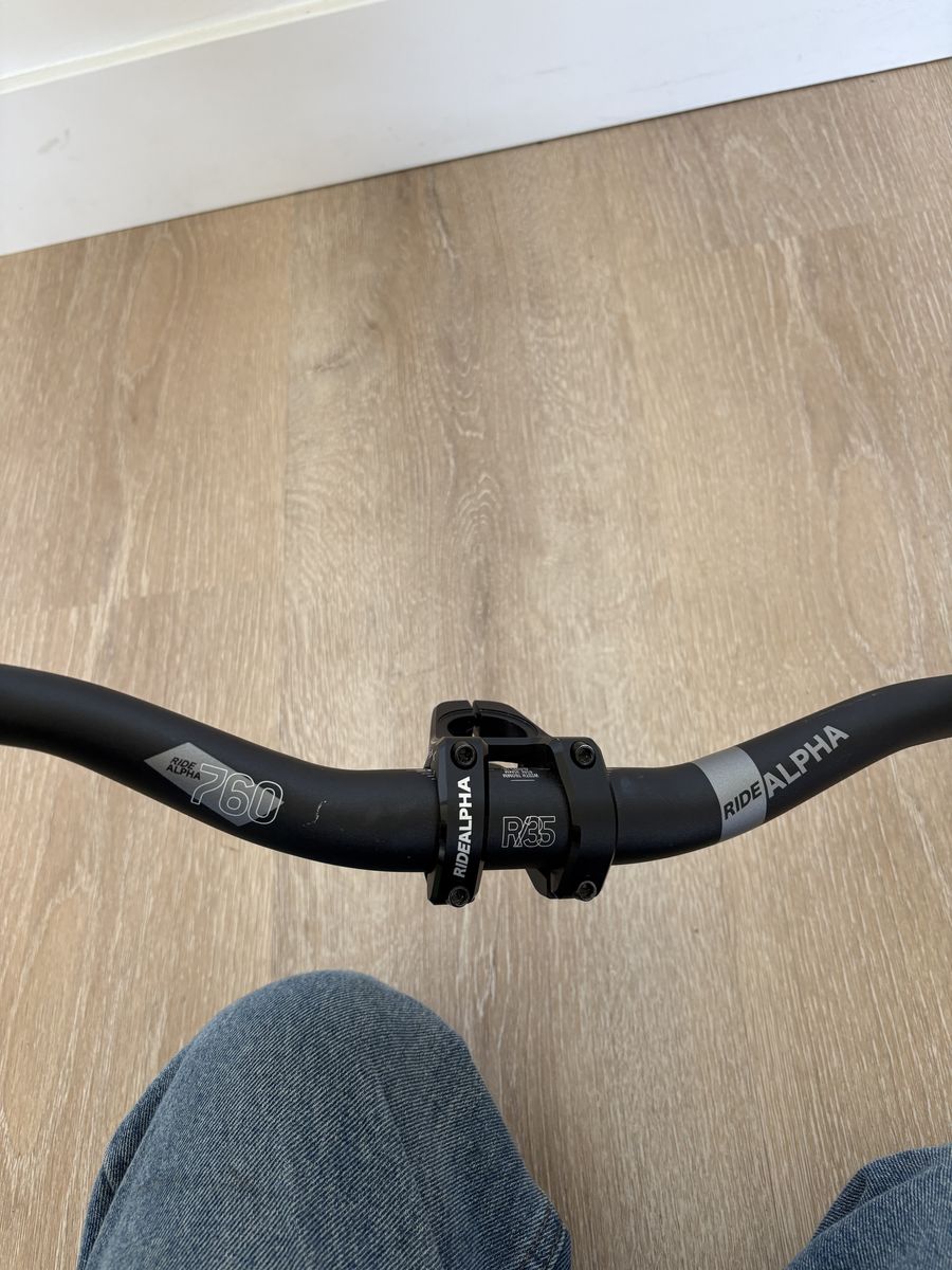 This is a combination of ride alpha 760 handlebars with a ride alpha stem and ride Alpha grips. These are all off of a dirt jumper. I bought from commencal and I upgraded used for only about a week or so so they are in great condition.