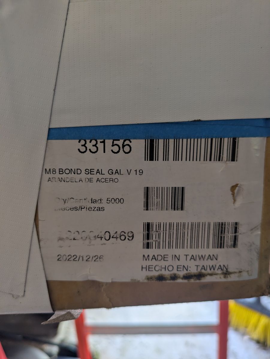 VenmoCleaning out the garage. Found this unused box of rubber bonded washers from an old project. None have been used. Fastenal part# 33156 5000 pieces.
