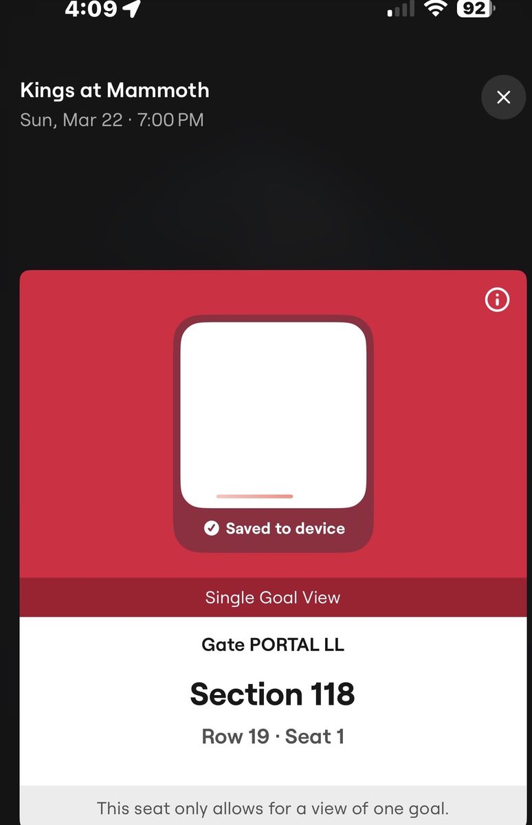 Tickets are single goal view. $5p per ticket. Venmo for payment and transfer through SeatGeek.