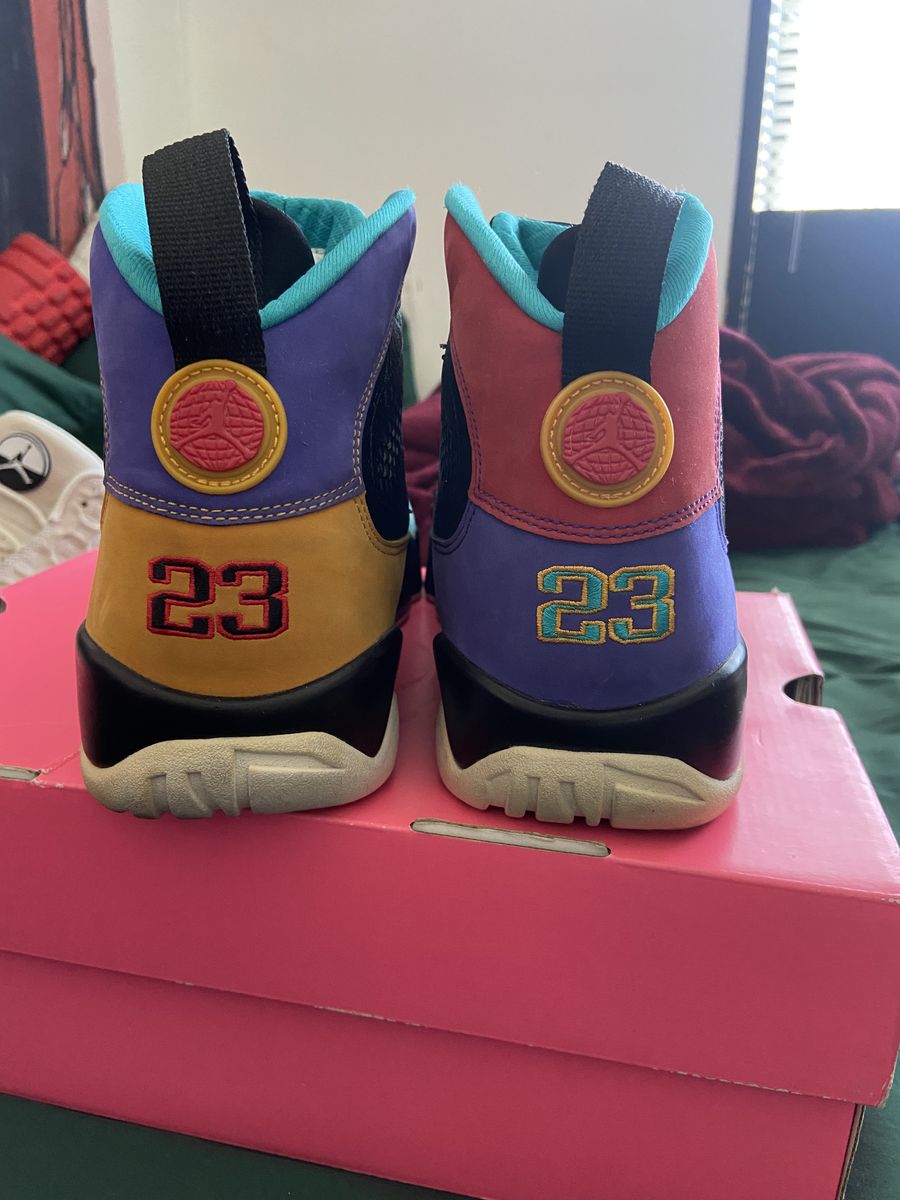 VenmoAir Jordan retro 13 “Chinese new year” size 9 and Air Jordan retro 9 “Dream it do it” in a size 9.5. Both have been moderately used. A little scuffing more noticeable on the 13’s since it suede but nothing that can’t be brushed clean. Original box for the 13’s but no box for the 9’s. PRICE- 80 each. 160 for both.