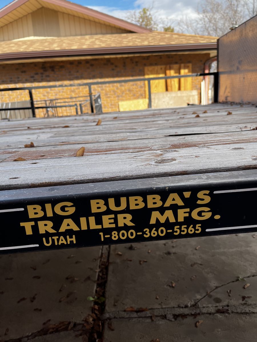 Great 2005 Big Bubbas flat bed trailer for sale! Deck is 8 ft wide by 21 ft 8 in long of useable deck as tires are underneath the deck. Has multiple tie down locations. Also has nice storage box on front. Deck was sealed this fall and in great shape. Also has self stored loading ramp in back which is very convenient. Takes 2” ball to tow. Tires are in good shape and comes with spare tire as well. Title in hand…No scammers or codes. Pay and pick up in person $3800 firm Call or text :435-383-3194 See Less See Less