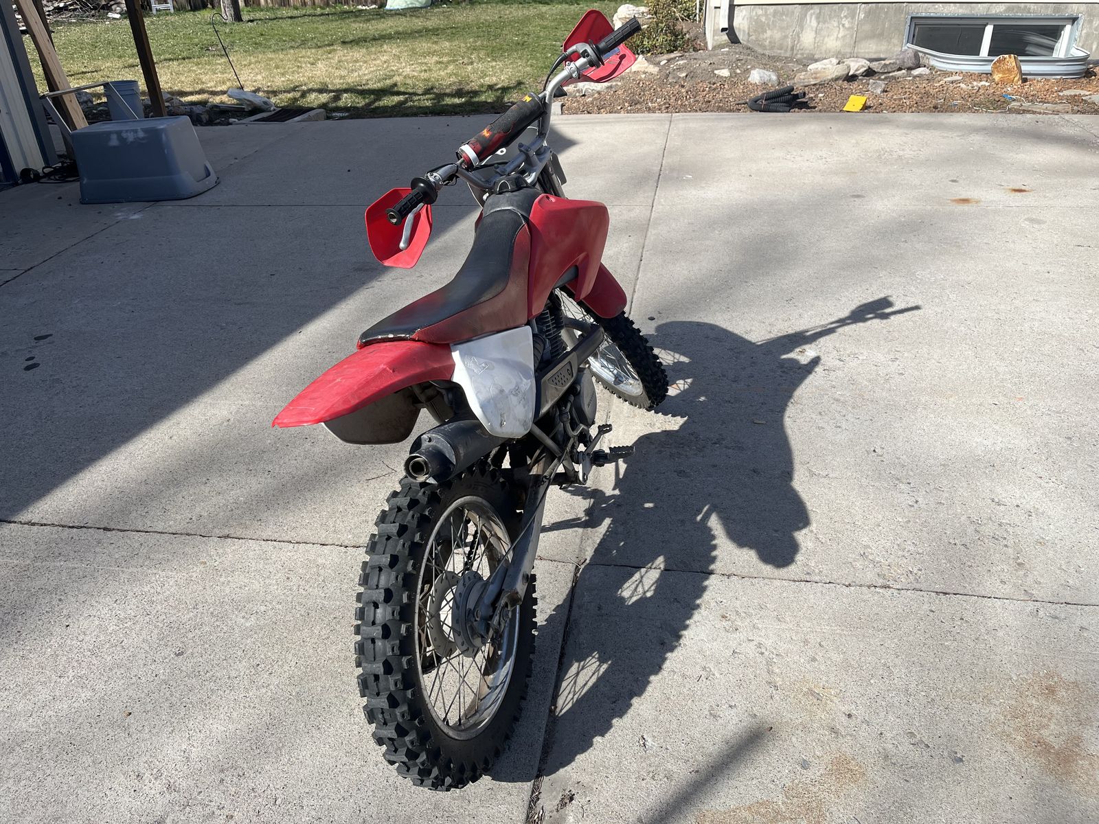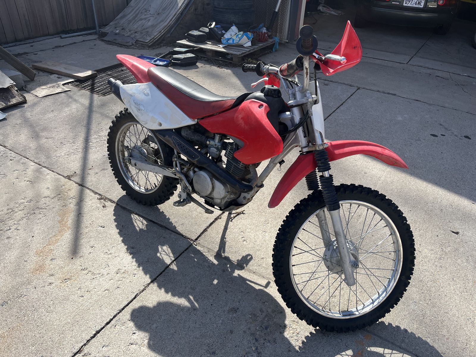 VenmoStarts up and runs great! It's a Honda after all. Brand new front tire. Recently replaced carb, coil, and plug. The quick link on the chain is also new. This is a great bike to learn on. It's been dropped it's share of times over the last 25 years so the bars are bent. Fork boots are torn, so you don't have to feel bad about handing it off to a beginner. My boy has outgrown it. I even have a spare carb so you can always keep one clean. Ready to ride and priced to sell.